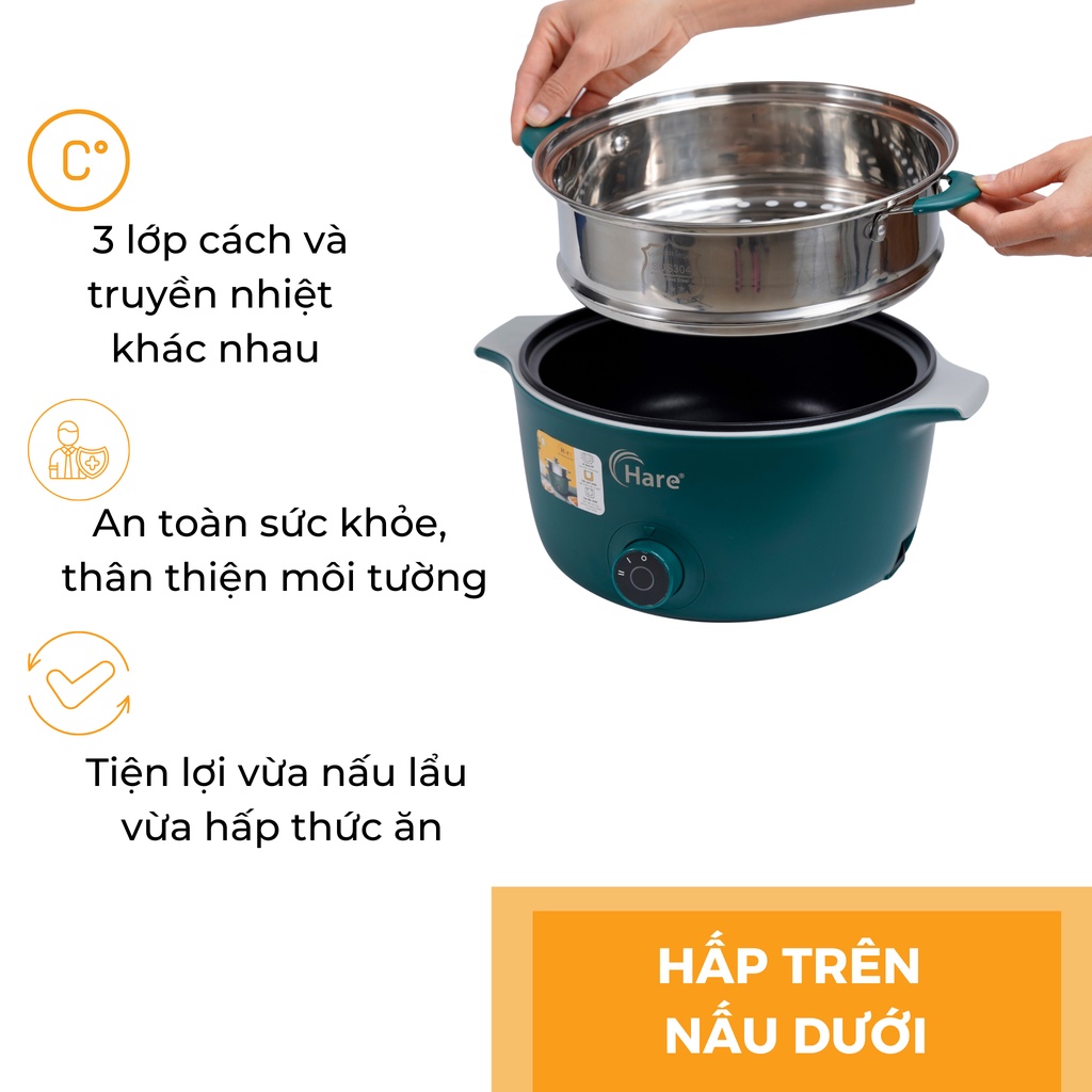 ✨Nồi lẩu điện đa năng HR-MF3006 (3.0L) -hàng chính hãng thương hiệu Hare - bảo hành 12 tháng