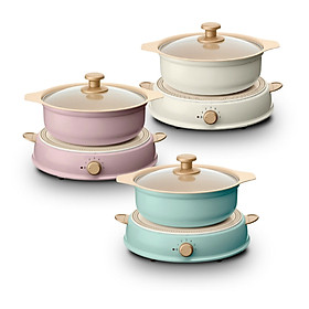 2 trong 1 gồm 2 lòng hợp kim phủ chống dính gốm Ceramic (lòng nướng bằng hơi nước và lòng nồi lẩu ) với 9 chức năng nấu (nấu lẩu, nướng, nướng bằng hơi nước,