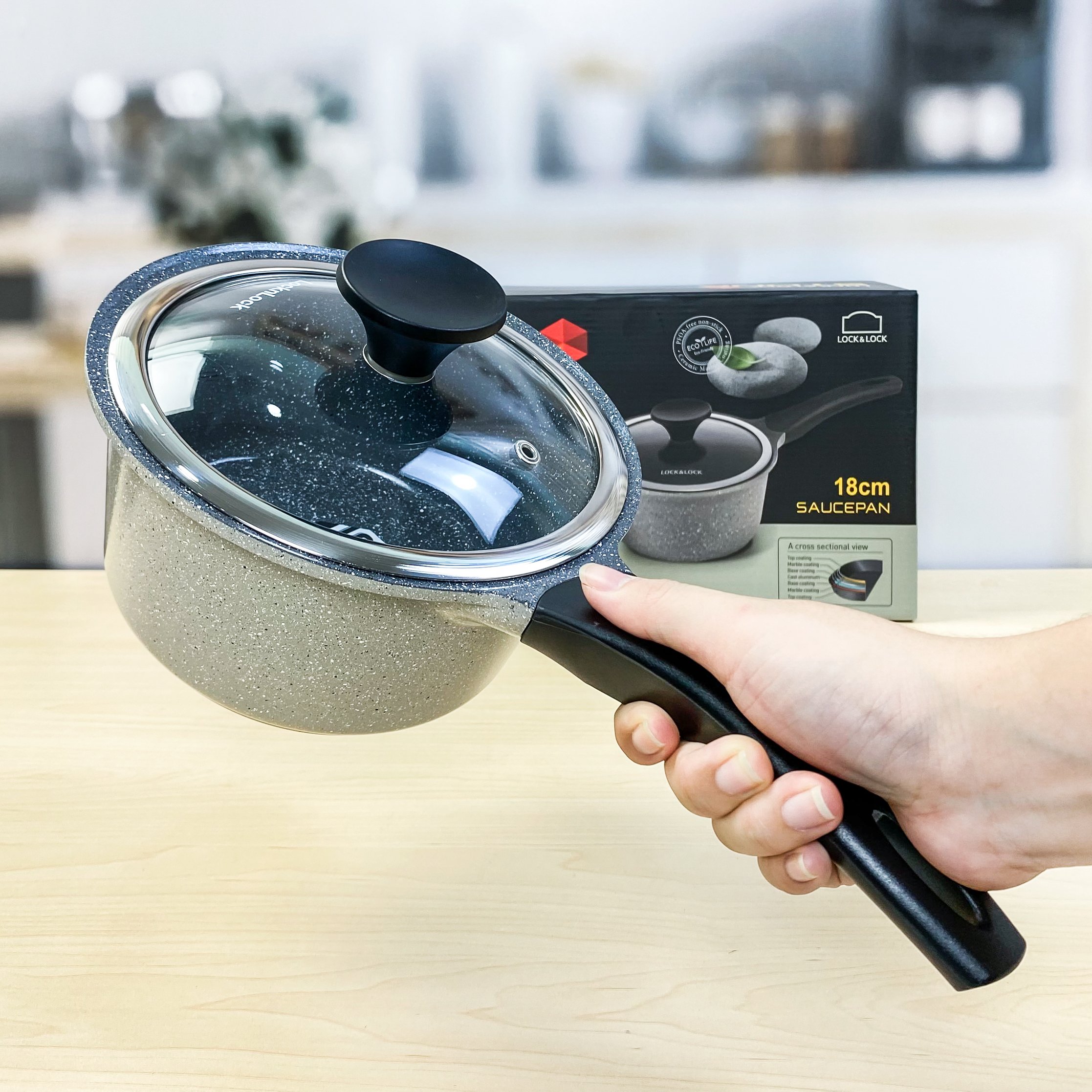✨Nồi Lock&Lock Stone 1 Tay Cầm LCA6181D-IH (18cm)