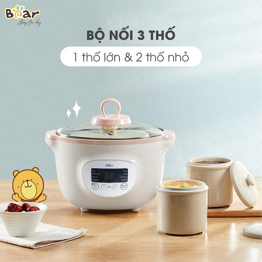 Nồi Nấu Chậm Bear 1.6L TIẾNG VIỆT - 3 Thố Sứ Kèm Xửng Hấp SB-NNC16