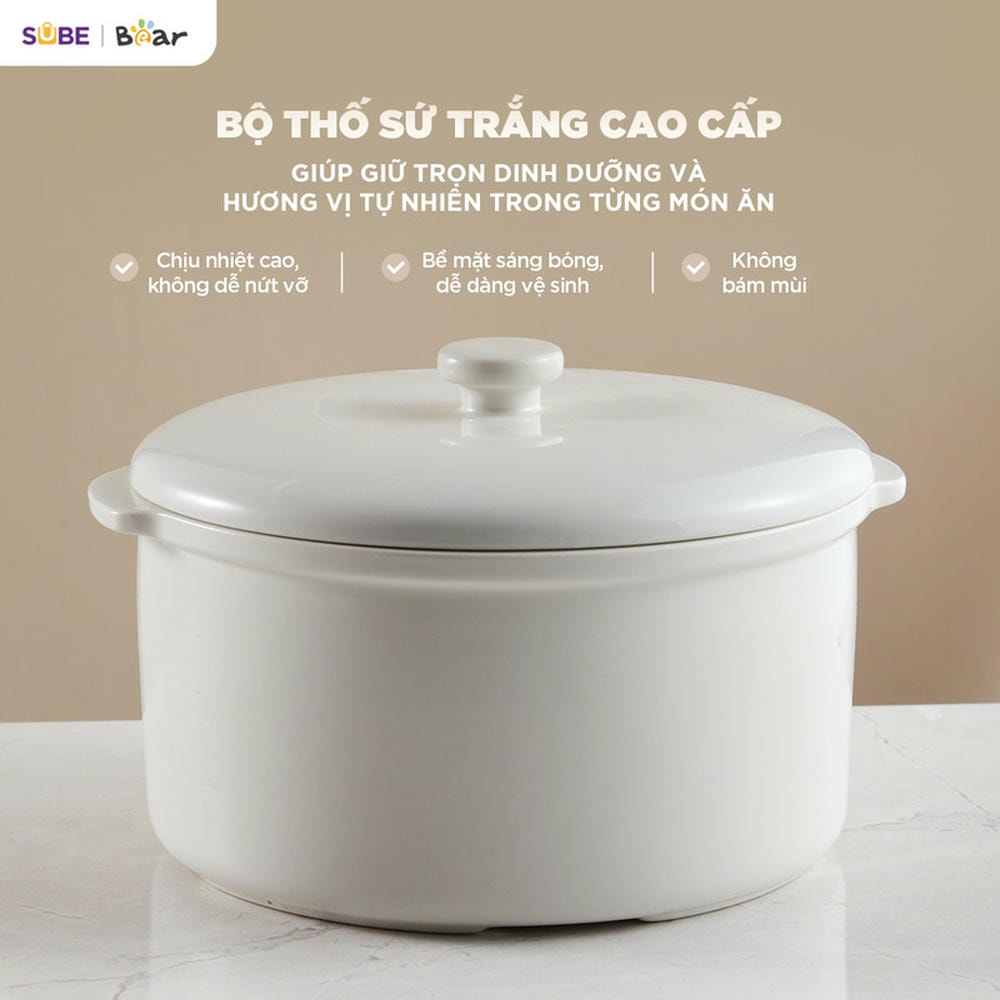 Nồi Nấu Chậm 1,6L Bear Chính Hãng Đa Năng Nấu Cháo, Chưng Yến Bản Quốc Tế Bảo Hành 18 Tháng - SUBE002 Lý do nên mua Nồi Nấu Cháo Chậm 1,6L Bear SUBE002 ️Dễ sử