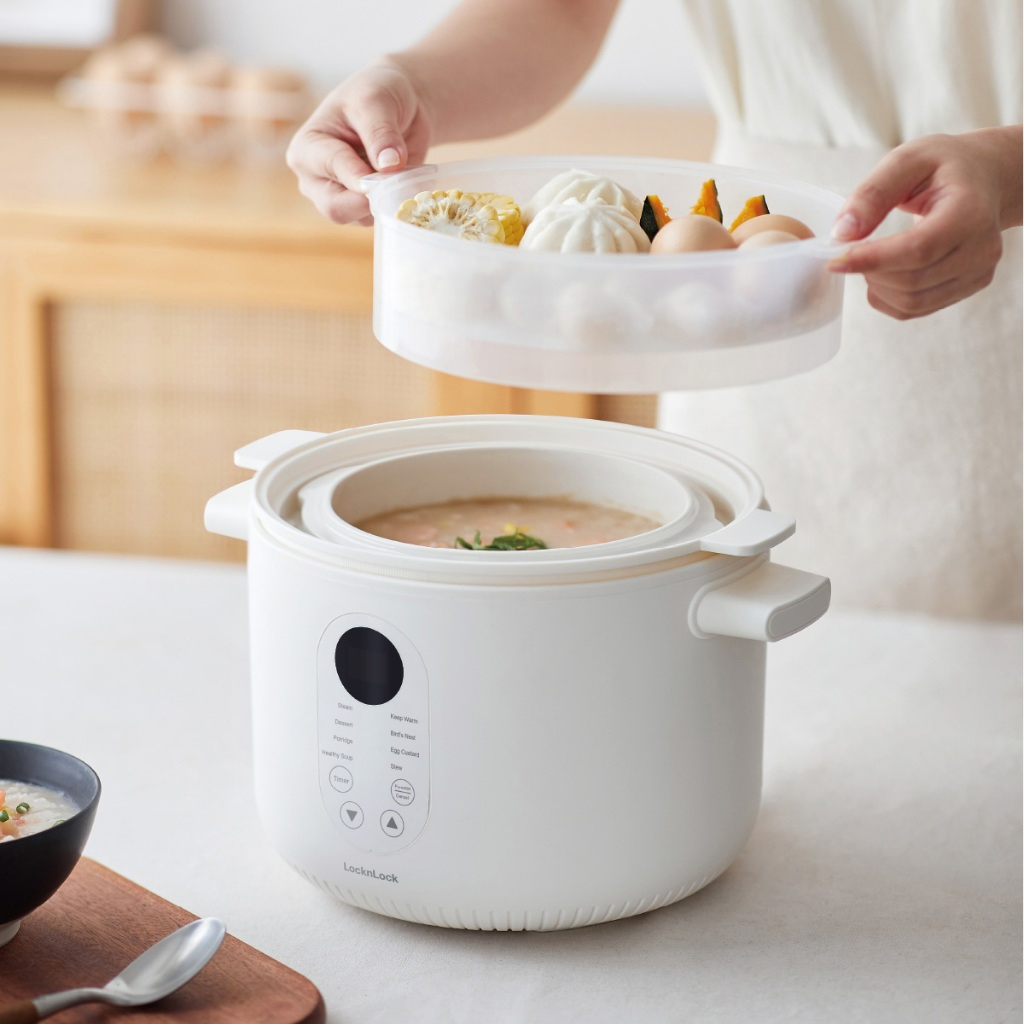 Nồi nấu chậm đa năng 2.5L Locknlock Bianco EJP164IVY, Hàng chính hãng, 4 thố sứ đi kèm, 7 chức năng, giữ ấm - JoyMall