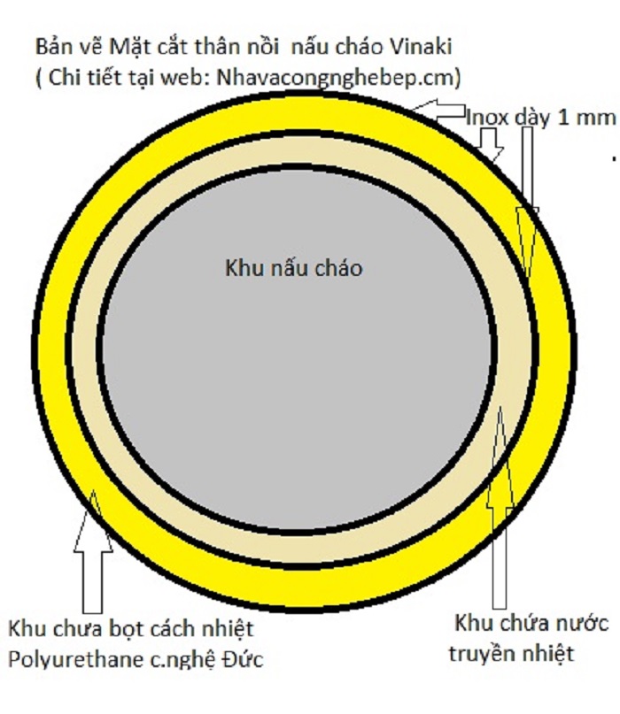 - Nồi hầm cháo này sử dụng tiện lợi, an toàn và bảo trì dễ dàng. Bởi nước đun cách thủy truyền nhiệt vào cháo chỉ cần nước sinh hoạt, nồi sẵn có Ống cấp, ống thăm và ống xả nước truyền nhiệt.