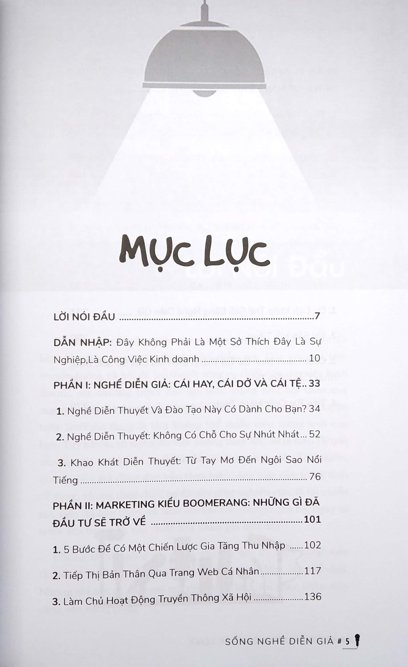 Là quyển sách đặc biệt, truyền tải giá trị và phong cách sống của một nghề mới, đang phổ biến trên trường quốc tế. Trong sách này, độc giả sẽ hiểu được tất tần tật những kinh nghiệm về nghề diễn thuyết, bao gồm các hoạt động liên quan đến nghề diễn thuyết (ở đây kiêm luôn cả nhà đào tạo), những kinh nghiệm thiết thực, cùng với những lời khuyên chân tình và giá trị.