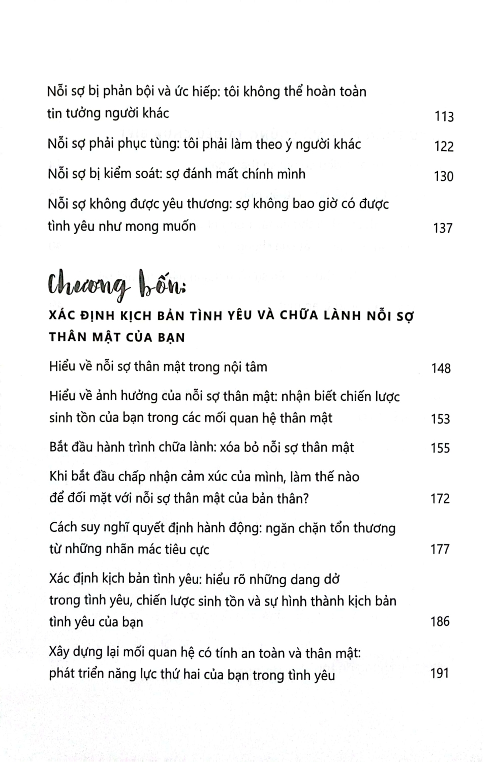 Nỗi Sợ Thân Mật Tại sao chúng ta không thể yêu và được yêu một cách hạnh phúc? Vì chúng ta đều đang bị “sa lầy” trong nỗi sợ thân mật của mình. Nỗi sợ thân mật (fear of intimacy) là một chứng sợ xã hội và rối loạn lo âu dẫn đến khó hình thành mối quan hệ gần gũi với người khác. Những người sợ hãi hoặc trốn tránh tình yêu đều có nỗi sợ sự thân mật; nhưng những người luôn làm hài lòng mọi người và khao khát được gần gũi lại càng sợ sự thân mật hơn. Vậy làm thế nào để thoát khỏi “vũng lầy” đó và xây dựng một mối quan hệ tốt đẹp? Câu trả lời nằm trong Nỗi sợ thân mật. Cuốn sách là lời thức tỉnh nhẹ nhàng giúp độc giả tự nhận thức và thấu hiểu bản thân. Hy vọng chúng ta đều có thể đưa ra những lựa chọn mới trong các mối quan hệ thân mật bởi chúng ta đều xứng đáng được hạnh phúc.