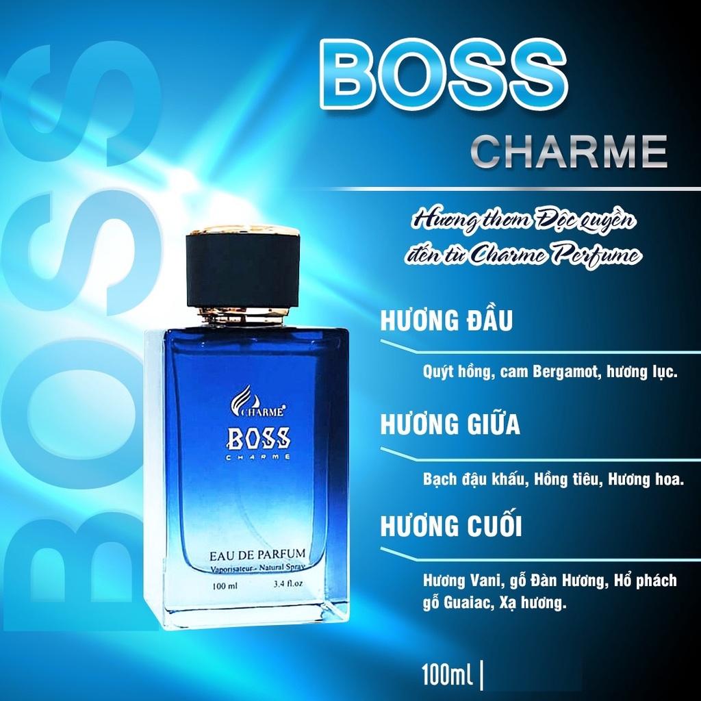 Nước hoa nam Charme Boss Charme 100ml Là dòng nước hoa nam Charme lấy cảm hứng từ sự mạnh mẽ, dám đương đầu khó khăn của hệ thống nước hoa Charme. Chính sự mạnh mẽ
