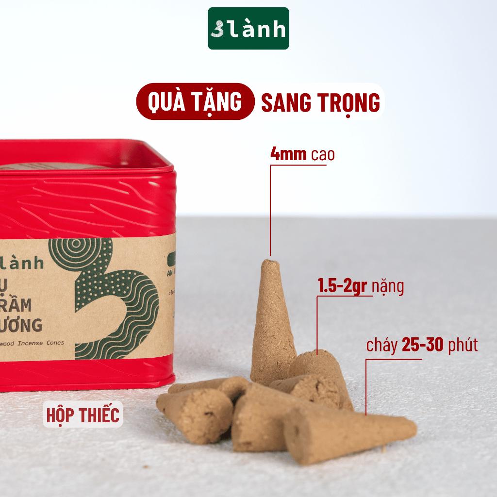 - Mùi Nụ trầm hương sạch sẽ tạo ra một bầu không khí thanh thản, dễ chịu, thúc đẩy sự tĩnh lặng và bình an nội tâm. Vì sao nên chọn sản phẩm nụ trầm hương sạch, tự nhiên, không hóa 3 Lành Không pha chất tạo mùi hương Sản phẩm 3 Lành đã được kiểm nghiệm tại Sở Khoa Học Và Công Nghệ Tp. Hồ Chí Minh Khi đốt, khói ít gây cay mắt. Thích hợp sử dụng hàng ngày và các dịp quan trọng Hướng dẫn sử dụng và bảo quản nụ trầm hương sạch tự nhiên không hóa chất 3 Lành ️ Thắp nhang nụ trầm hương trên đĩa: Đặt nụ trầm lên đĩa hương bằng sành hoặc sứ có khả năng chịu nhiệt cao, thắp đỉnh hương cho khói trầm hương bay lên. ️ Sử dụng lò xông trầm: Đặt nụ trầm hình tháp vào trong lư hương, thắp đỉnh hương và đóng nắp xông trầm. Hương trầm sẽ thoát ra từ các lỗ xông trầm, phần tàn nhang rơi xuống đáy lư xông hương nên rất dễ dàng vệ sinh, dọn rửa. ️ Sử dụng thác khói trầm hương: Thác khói trầm hương có hình thù đa dạng, thắp nụ trầm cao cấp dạng búp sen đặt vào thác khói. Khi đó, khói hương thoát ra từ đáy nụ trầm búp sen, men theo kết cấu đặc biệt của thác khói tạo thành dòng khói huyền ảo. ️ Bảo quản nụ trầm hương nơi khô ráo ️ Đóng nắp hộp nụ trầm hương sau khi sử dụng
