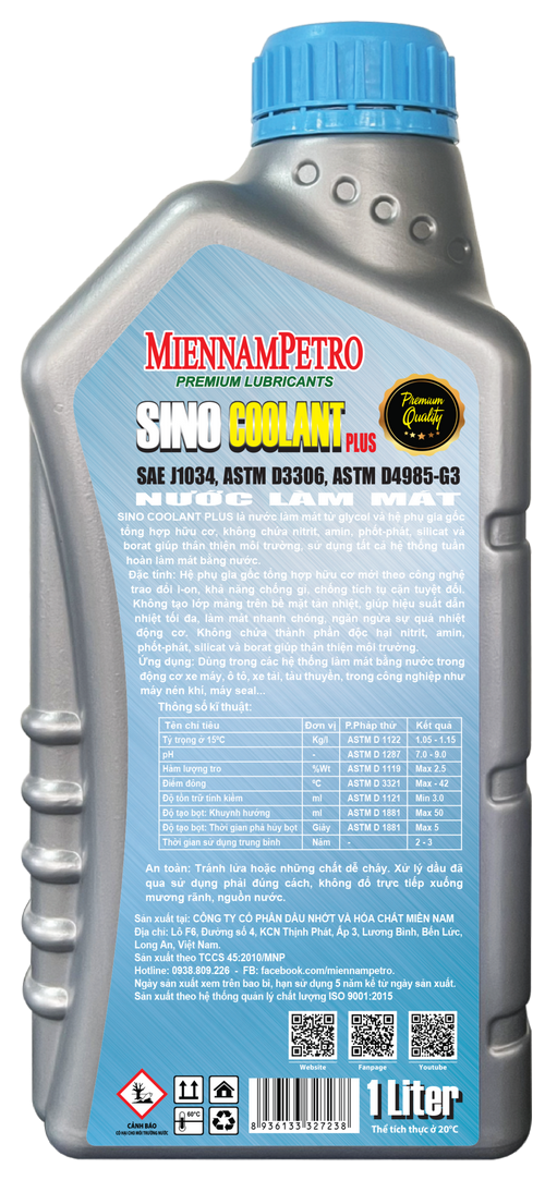 ✨Nước Làm Mát MiennamPetro Sino Coolant Plus SAE J1034 1L Phù Hợp Xe Máy, Xe Ô Tô Và Thiết Bị Công Nghiệp