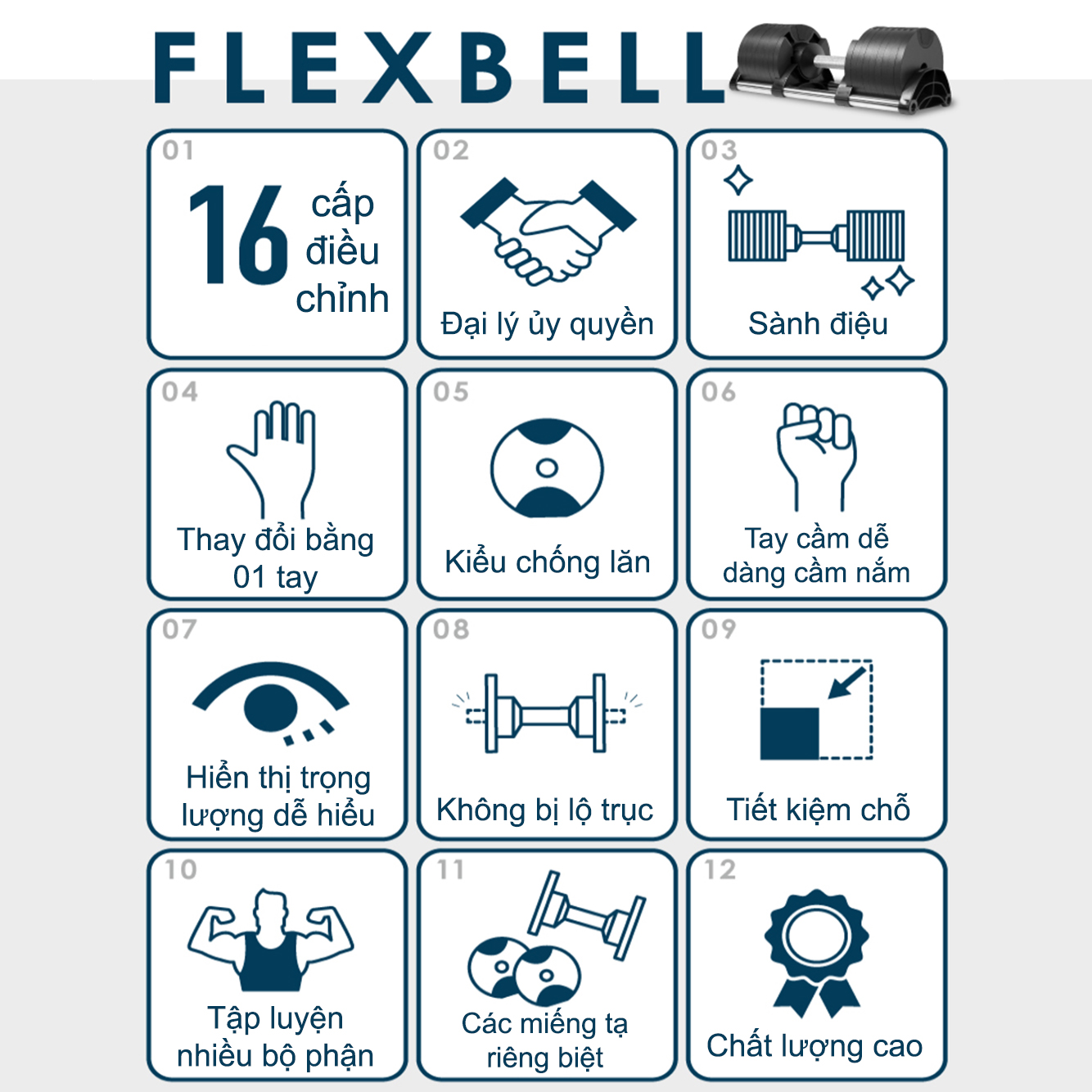 *Thông tin chi tiết về bộ tạ tay điều chỉnh 10kg chất liệu Composite 6 trong 1 cao cấp. - Mã sản phẩm: FED-130210. - Xuất xứ: Trung Quốc. - Chất liệu bánh tạ: Bên