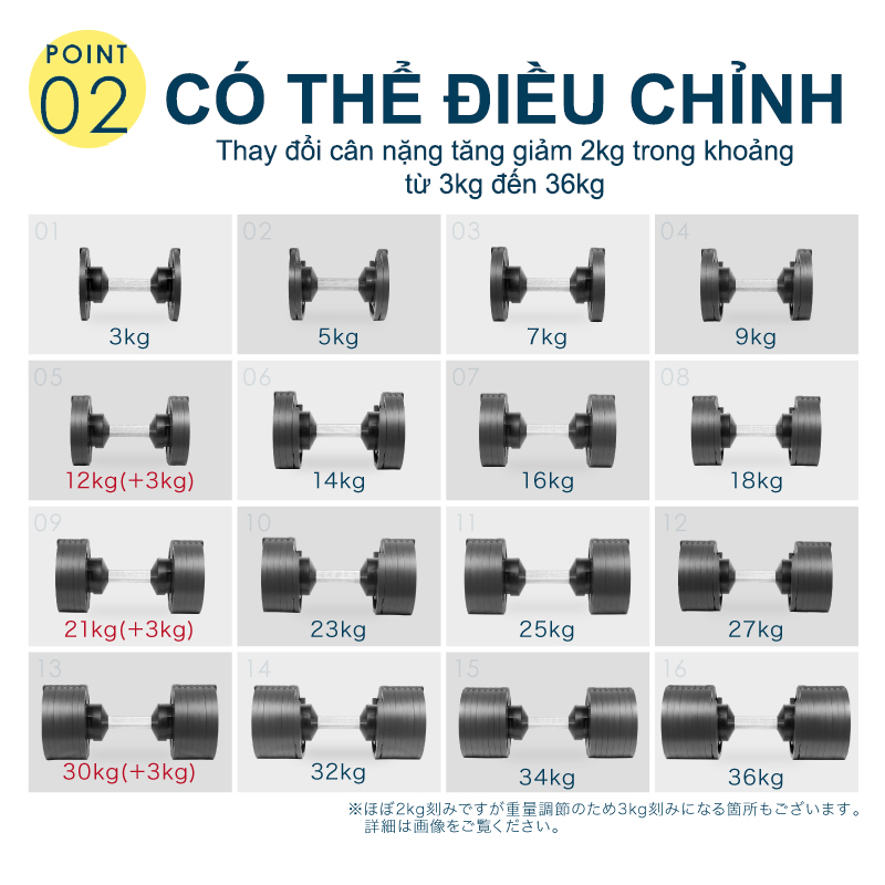 Bộ Tạ Gồm 2 Tạ Tay : Mỗi bên Nặng 1,5kg ( Tổng cả bộ là 3kg) + Chất liệu siêu bền Với lõi bằng sắt, bạn không phải lo ngại về tuổi thọ của