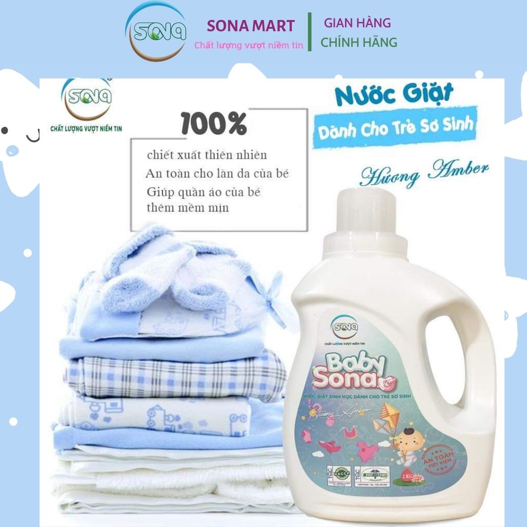 Nước giặt sinh học cho trẻ sơ sinh SONA baby 2kg, giặt xả quần áo trẻ em 2 trong 1 mềm mại lưu hương dài lâu, an toàn cho mọi làn da nhạy cảm của bé