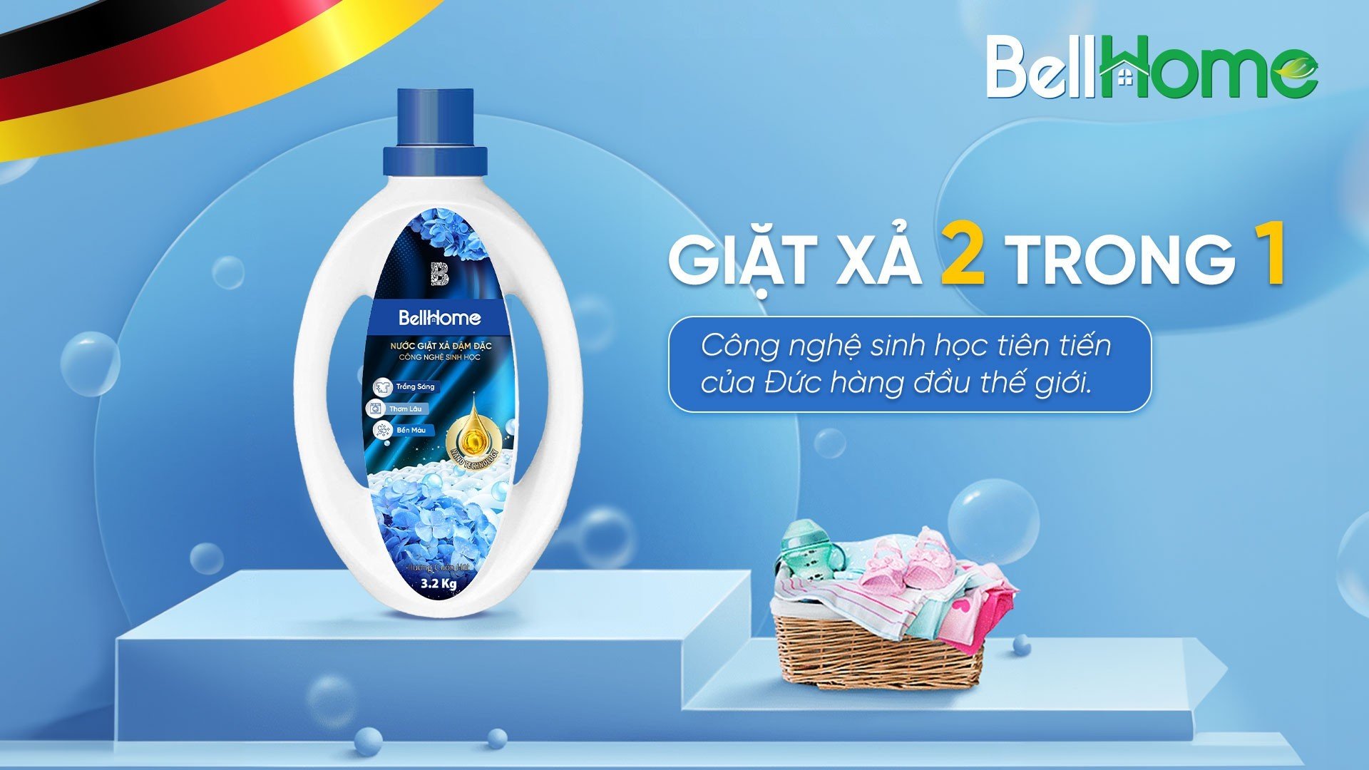 Nước Giặt Xả Công Nghệ Sinh Học Bell Home – Giải Pháp Sống Xanh Hiện Đại, An Toàn Cho Sức Khỏe Nước giặt xả Bell Home đang thu hút sự chú ý từ cộng đồng người tiêu dùng nhờ ứng dụng công nghệ enzyme sinh học tiên tiến, mang đến khả năng làm sạch tối ưu và hương thơm lưu giữ lâu dài. Đây là giải pháp lý tưởng cho những ai theo đuổi phong cách "Sống Xanh", bảo vệ sức khỏe gia đình và thân thiện với môi trường. Tìm Hiểu Về Nước Giặt Xả Công Nghệ Sinh Học Bell Home Nước giặt xả Bell Home là dung dịch giặt xả được sản xuất bằng công nghệ sinh học, sử dụng các enzyme có nguồn gốc tự nhiên để loại bỏ vết bẩn cứng đầu trên quần áo. Không giống như các loại nước giặt công nghiệp sử dụng hóa chất mạnh như NaOH hay Clo, sản phẩm này an toàn cho sức khỏe, không gây kích ứng da, đặc biệt phù hợp với gia đình có trẻ nhỏ. Sản phẩm được tạo nên từ 97% thành phần thực vật và không chứa phosphate hay các hương liệu nhân tạo, mang đến sự yên tâm cho người tiêu dùng về độ an toàn và tính thân thiện với môi trường. Công Nghệ Enzyme Hiện Đại Trong Nước Giặt Xả Bell Home Bell Home đã ứng dụng hai loại enzyme sinh học tiên tiến trong sản phẩm: