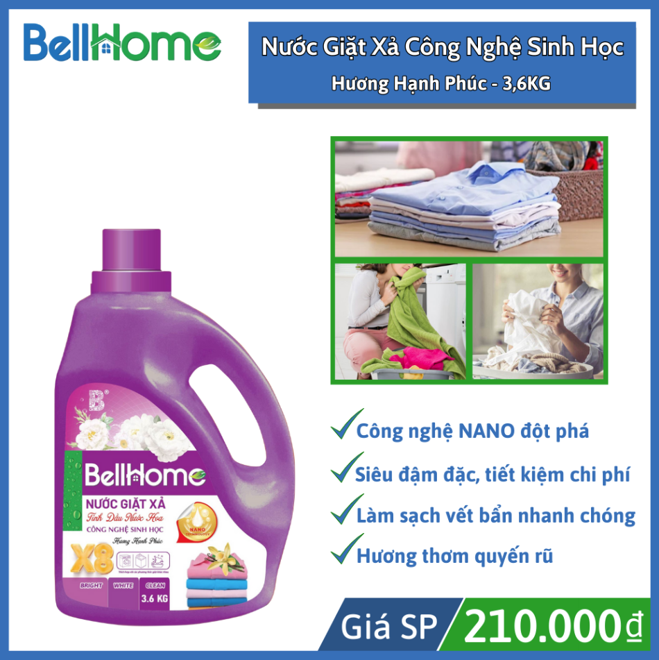 ✨Nước Giặt Xả Công Nghệ Sinh Học Bell Home Tím Hương Hạnh Phúc 3,6KG