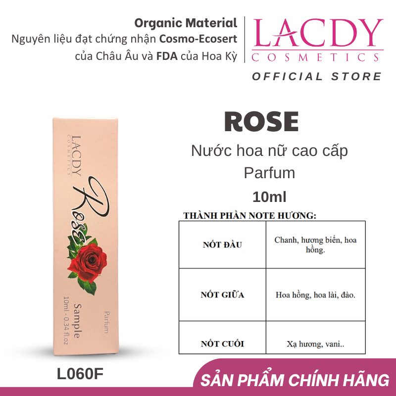 Nước hoa Mini ROSE - Hương hoa hồng lãng mạn Tình đầu quốc dân trong mắt mọi cô gái, bắt đầu nhẹ nhàng và dễ chịu với một thoáng hương biển và chanh tươi mát. ROSE mang đến cho bạn cảm giác như như đang thả mình vào chiếc giường êm ái trải đầy hoa hồng chấm phá thêm chút dịu ngọt của hoa đào, quanh quẩn quấn quýt mãi không rời. Để rồi đọng lại ở note cuối là hương thơm lôi cuốn đầy ma lực của vani và xạ hương. ROSE sẽ khiến cho những người xung quanh phải ngoái đầu nhìn bạn với ánh mắt tò mò và đầy ngưỡng mộ. Với ba tầng hương chính: Note đầu: Chanh, hương biển, hoa hồng Note giữa: Hoa hồng, hoa lài, đào Note cuối: Xạ hương, vani.