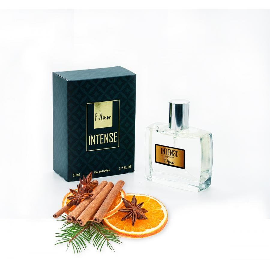 Với vị cay nồng ấm của tiêu đen hòa huyện một cách hoàn hảo với hương hoa oải hương và vẻ mát mẻ của violet, F’Amor Intense để lại những ất tượng mạnh mẽ. Với sự kết hợp của nhiều hương vị cay của hạt nhục đậu khấu và các loại nhựa ấm của benzoin, hổ phách đã mang đến một hương thơm nam tính hiện đại. Đặc sắc hơn ở những hương cuối là hiện diện sự ấm ấp của gỗ đàn hương, các sắc thái lịch lãm tinh dầu thơm cây hoắc hương, chiết xuất từ cỏ vetive, và được bao bọc bởi hương thơm gợi cảm của xạ hương; F’Amor Intense Cho bạn hương thơm suốt ngày đầy quyến rũ với công thức đậm đặc mới.