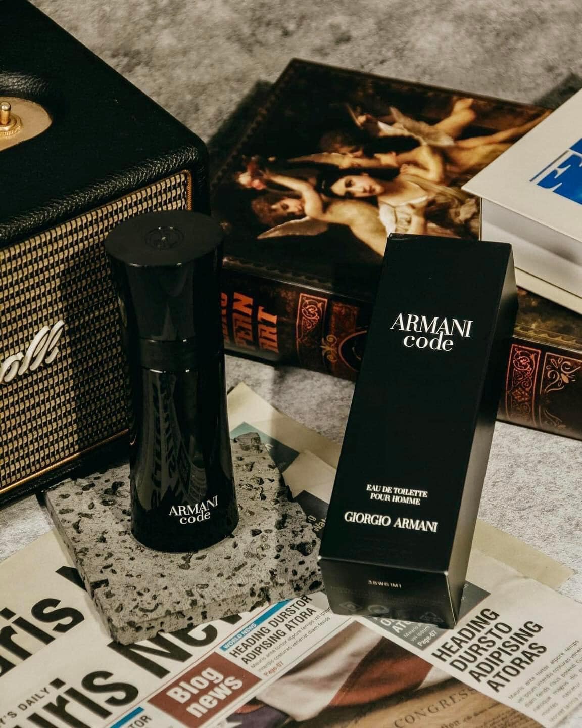 Giorgio Armani Code với hương thơm hiện đại và tinh tế dành cho nam giới này cất lên như một ly cocktail tươi mát của mùi hương Bergamot và chanh. Tựa như vị rượu mạnh thấm vào trong huyết quản, cảm giác ở khoảnh khắc tiếp theo toả ra nhẹ nhàng và ấm áp bởi hương hoa Olive, quả Hồi và Gỗ Guaiac. Như thể diễn tả một cách chuẩn xác cách mà người đàn ông trưởng thành điềm nhiên thể hiện sự hấp dẫn của mình, hơi Tobacco tản vào không gian, kéo theo đó là hương da và đậu Tonka làm ấm dần những cảm xúc và miêu tả triệt để sức hút từ anh chàng.