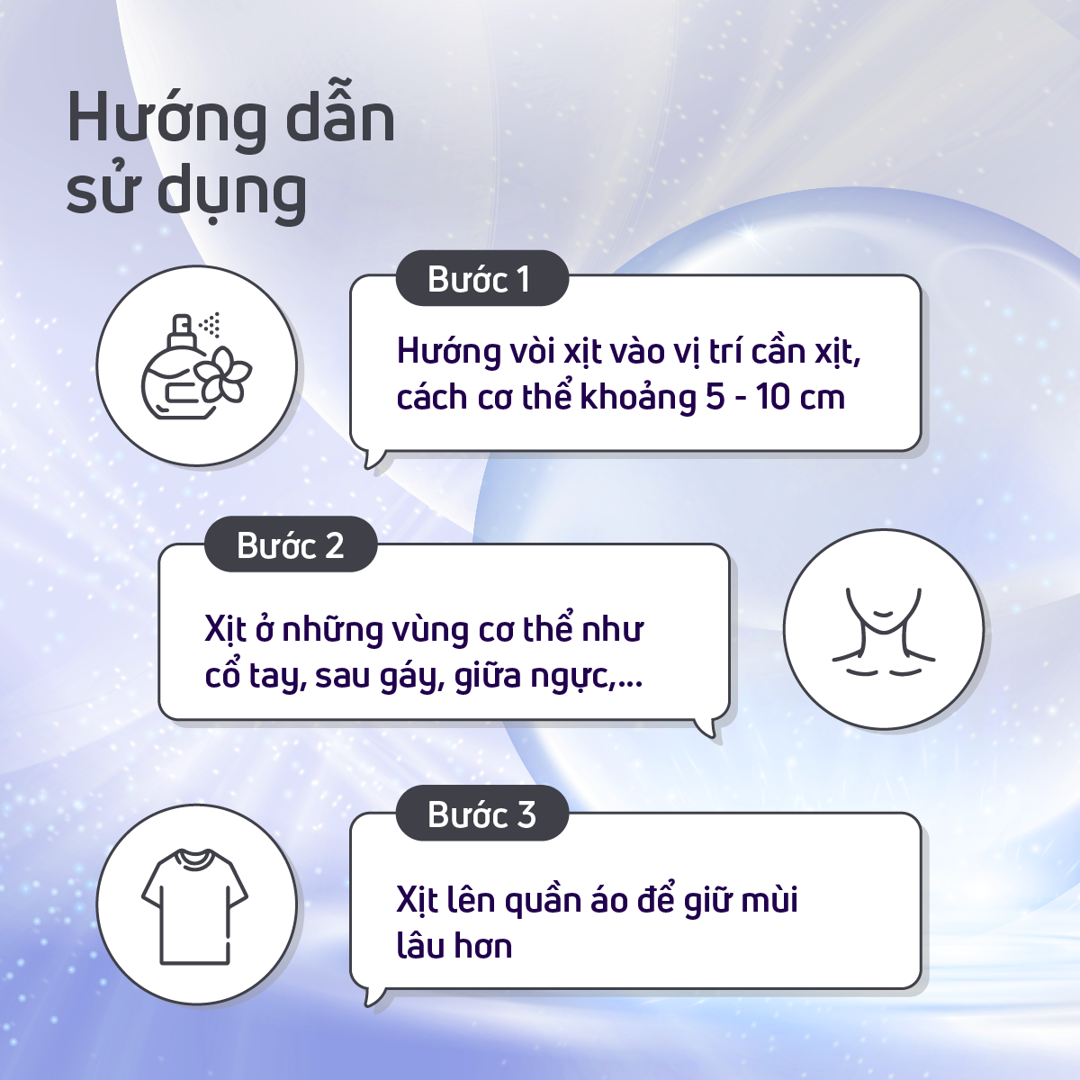 - Xịt ở những vùng cơ thể để hương thơm khuếch tán và giữ mùi được lâu nhất như cổ tay, sau gáy, giữa ngực...