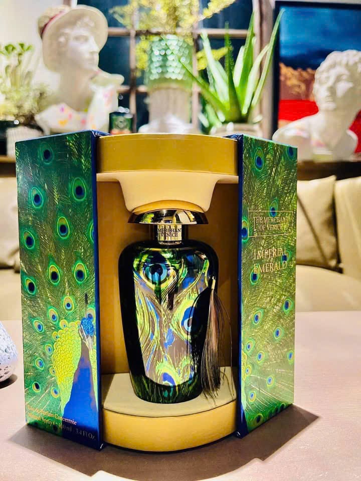 Đôi mắt màu ngọc lục bảo, hình ảnh của bộ trang phục hoàng gia và mùi hương thanh lịch: Imperial Emerald là một mùi hương quyến rũ đến từ Thương gia Venice , lấy cảm hứng từ con công. Trải qua hàng năm tháng, công ty trở thành nguồn cảm hứng cho những người huyền thoại và truyền thuyết ở cả hai nền văn hóa phương Tây và phương Đông, những phương tiện truyền thuyết này mang những ý nghĩa cao quý: vẻ đẹp, tuổi thọ, tình yêu, sang trọng và diện mạo. Như một lời tri ân dành cho thanh lịch và kỳ diệu của Imperial Emerald đã lấy cảm hứng từ những bông hoa văn màu xanh lục bảo và xanh lam như đuôi công, tạo ra một tác phẩm mùi hương.