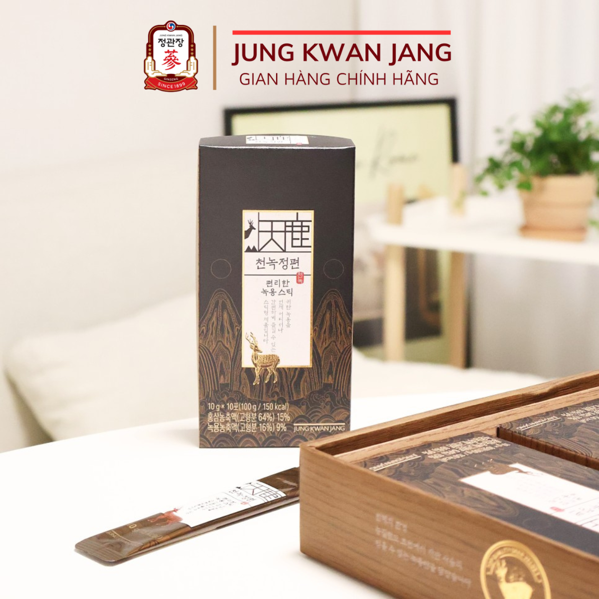 - Tinh chất hồng sâm Nhung Hươu được sản xuất từ nhung hươu khô tự nhiên đã được chứng nhận an toàn và sản xuất bởi đội ngủ nghiên cứu hơn 200 người giàu kinh nghiệm của Jung Kwan Jang.
