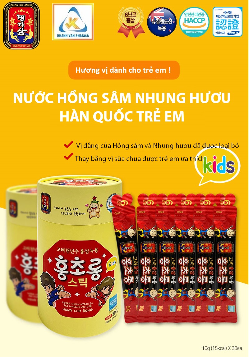 NƯỚC HỒNG SÂM NHUNG HƯƠU HÀN QUỐC TRẺ EM - KOREA CHEON NYEON SU RED GINSENG ANTLER HONG CHO RONG