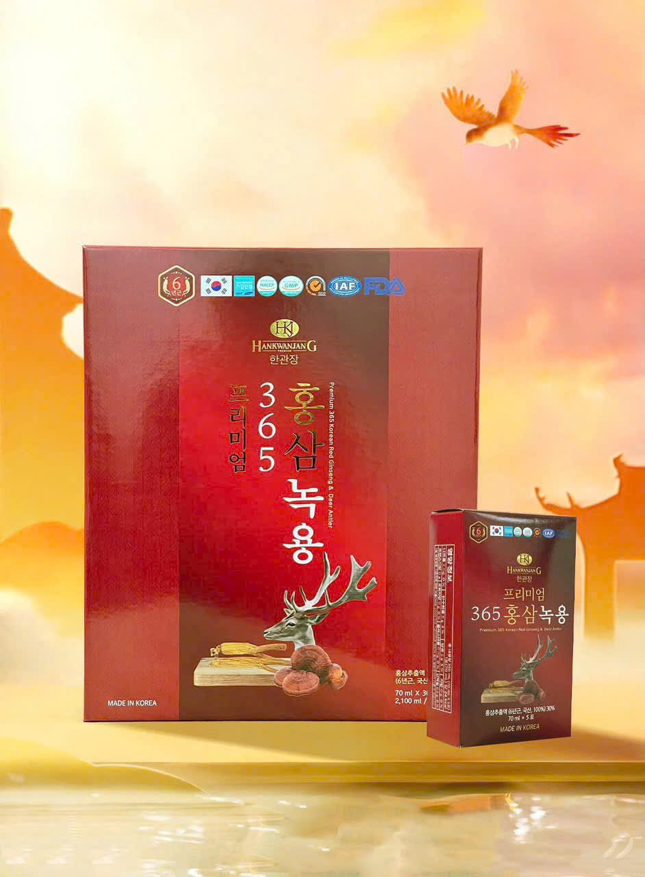 Nước Hồng Sâm Nhung Hươu Linh Chi 365 Hàn Quốc 6 Năm Tuổi (70ML x 20 Gói) - Ruvask