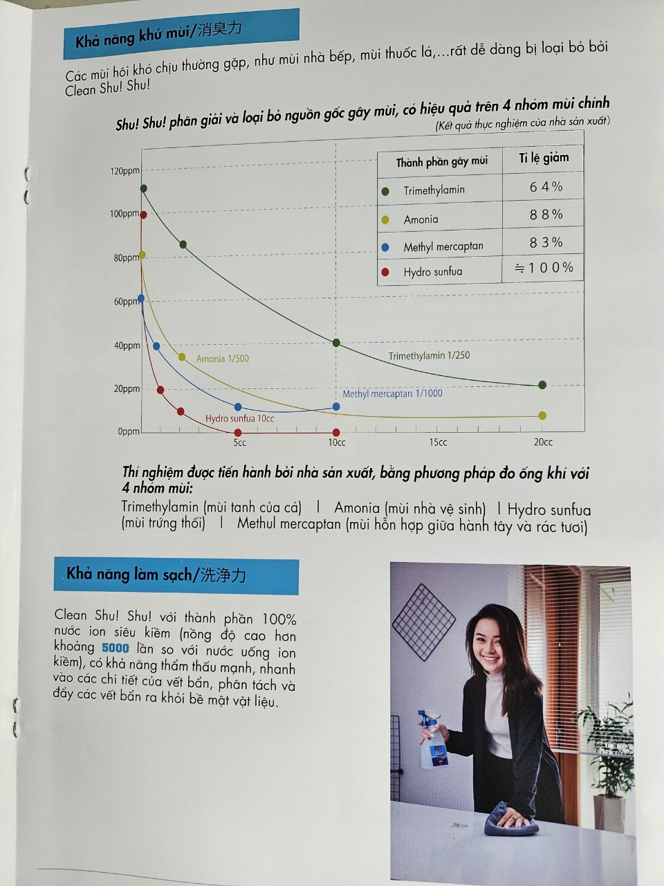 I. Giới thiệu về Clean Shu Shu   Clean Shu Shu là một sản phẩm độc đáo với thành phần chính là nước ion kiềm, được thiết kế đặc biệt để dành riêng cho trẻ em. Với khả năng tẩy rửa tiên tiến của nước ion kiềm, sản phẩm giúp loại bỏ hiệu quả vi khuẩn, vi rút và bụi bẩn gây hại, đồng thời bảo vệ làn da mỏng manh của trẻ khỏi các chất hóa học cứng và gây kích ứng.   II. Các điểm nổi bật của Clean Shu Shu     1.Nước ion kiềm an toàn và tự nhiên   Clean Shu Shu là sản phẩm hoàn toàn tự nhiên, không chứa các hóa chất độc hại như paraben, sulfate, hay phẩm màu tổng hợp. Điều này đảm bảo an toàn tuyệt đối cho làn da nhạy cảm của trẻ, giúp tránh tình trạng kích ứng và dị ứng.   2.Tẩy sạch hiệu quả   Nước ion kiềm trong Clean Shu Shu có khả năng tẩy rửa mạnh mẽ, loại bỏ sạch vi khuẩn, vi rút và các bụi bẩn độc hại, đồng thời đánh bay mùi hôi không mong muốn. Sản phẩm hoạt động nhanh chóng và hiệu quả, mang lại cảm giác sạch sẽ và thoải mái cho bé.   3.Dịu nhẹ và không gây khô da   Clean Shu Shu chứa các thành phần dưỡng ẩm tự nhiên giúp duy trì độ ẩm cần thiết cho da của trẻ. Không gây khô da hay làm tổn thương bề mặt da như các loại nước tẩy rửa thông thường. Hương thơm dễ chịu: Sản phẩm sử dụng các hương thơm tự nhiên dịu nhẹ, giúp bé cảm thấy dễ chịu và thư giãn sau khi tắm.   4.Tẩy rửa Đa năng   Clean Shu Shu không chỉ dùng để tẩy rửa cho da, mà còn có thể sử dụng để vệ sinh đồ chơi, các bề mặt nhà cửa và đồ dùng trẻ em khác.   III. Cách sử dụng Clean Shu Shu   Dùng xịt trực tiếp lên bề mặt cần làm sạch, không cần rửa lại bằng nước   IV. Tiêu chuẩn an toàn   Clean Shu Shu đã được kiểm nghiệm chất lượng và đảm bảo an toàn sử dụng cho trẻ em. Sản phẩm không gây kích ứng và đã được chứng nhận bởi cơ quan kiểm nghiệm tại Nhật Bản và Việt Nam. Clean Shu Shu là sự lựa chọn hoàn hảo dành cho trẻ em. Với thành phần chính là nước ion kiềm và công thức tẩy rửa tiên tiến, sản phẩm không chỉ đảm bảo sạch sẽ và an toàn cho da nhạy cảm của trẻ mà còn giúp bảo vệ sức khỏe cho cả gia đình. Hãy để Clean Shu Shu trở thành người bạn đồng hành đáng tin cậy trong cuộc sống hàng ngày của bạn và con yêu!