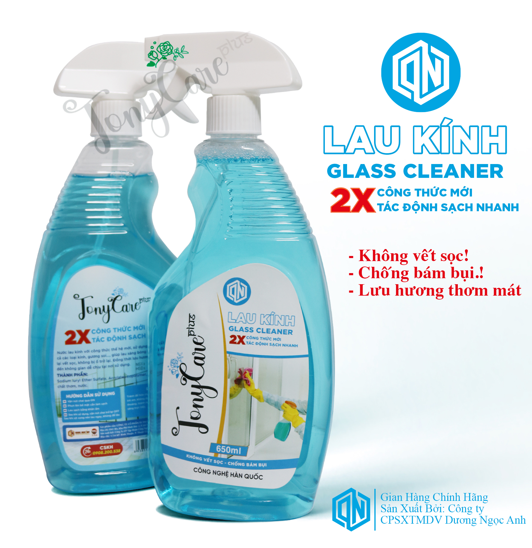 ✨Nước lau kính Tonycare 650ml – Sạch bóng, chống bám bụi, không để lại vệt – Chính hãng Tonycare
