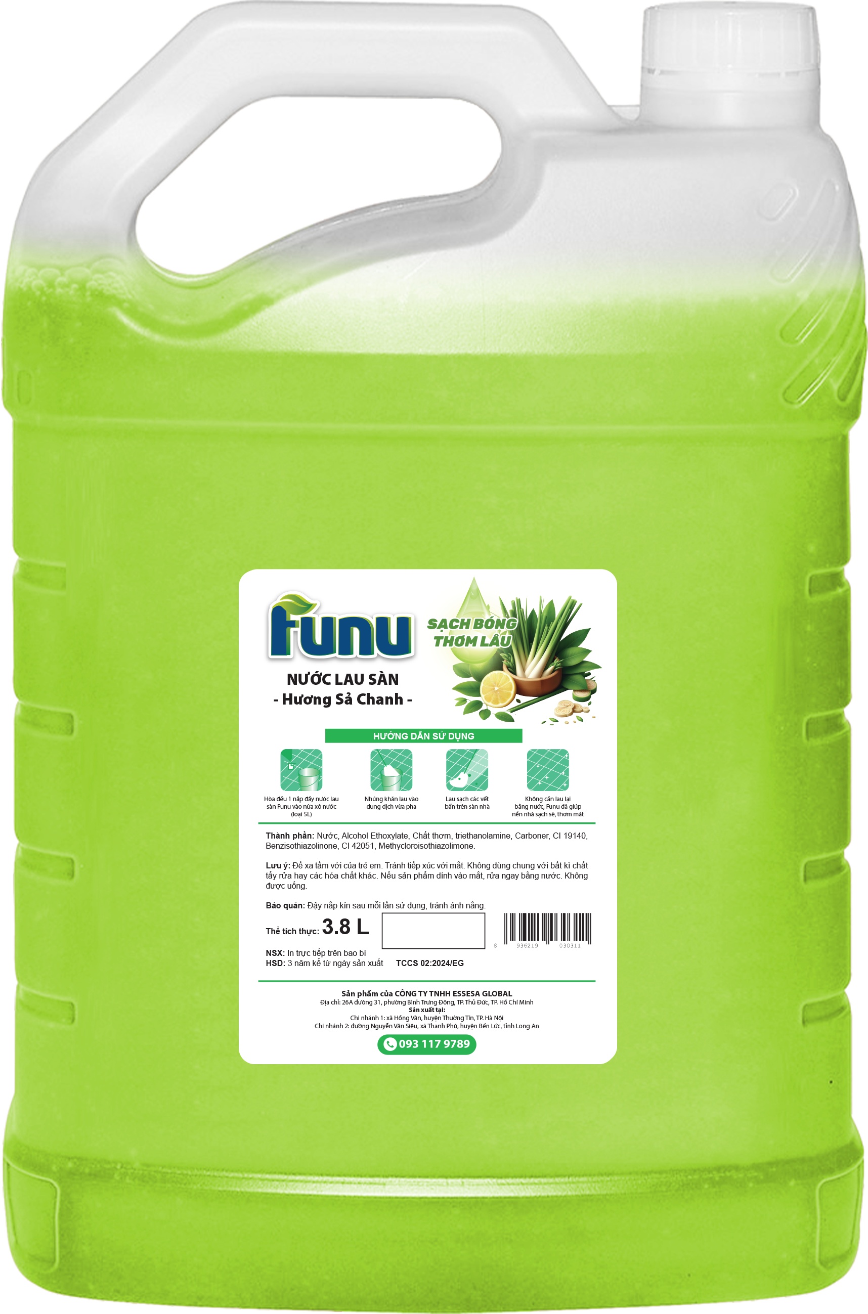 Làm Sạch Sâu và Hoàn Hảo. Nước lau sàn hương chanh sả có khả năng loại bỏ bụi bẩn, vết bẩn, và dầu mỡ trên sàn nhà một cách hiệu quả, để lại không gian sạch sẽ và tươi mới.