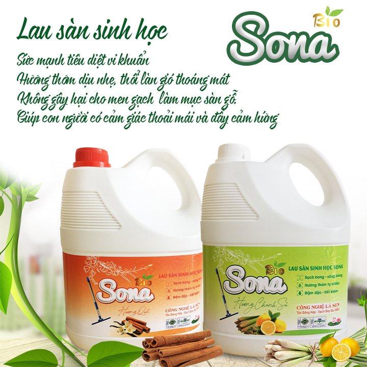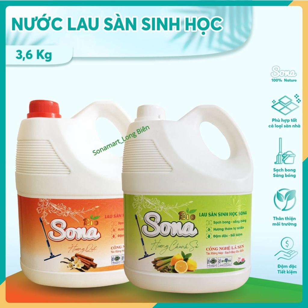 Nước lau sàn nhà sinh học SONA 3.6L hương chanh sả, quế 100% từ thiên nhiên phù hợp với mọi loại sàn nhà như gạch men, gỗ, SONA là nhãn hàng thuộc Công ty Cổ phần thương mại và dịch vụ SONA chuyên sản xuất và kinh doanh các mặt hàng về chăm sóc cá nhân, chăm sóc nhà cửa có nguồn gốc thiên nhiên. Là một trong những thương hiệu tiên phong trong việc ứng dụng công nghệ sinh học, đến với SONA việc chăm sóc không gian ngôi nhà bạn sẽ trở lên nhẹ nhàng hơn, an toàn hơn và tiết kiệm hơn.