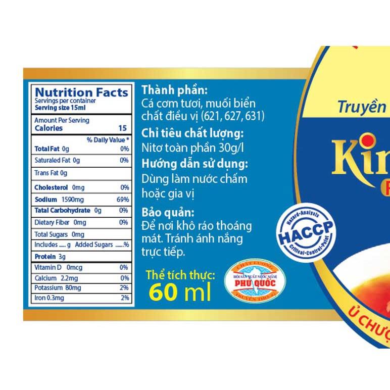NƯỚC MẮM PHÚ QUỐC CHỈ DẪN ĐỊA LÝ 40 ĐỘ ĐẠM - 1 CHAI 60ML - Dung tích: 60ml (1 chai). - Độ đạm: 40 g/l - Độ đạm cao tự nhiên. - Thành phần: