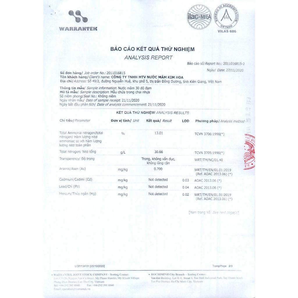 Nước Mắm Cá Đen Phan Thiết đạt chứng nhận tiêu chuẩn HACCP ( tiêu chuẩn VSATTP Châu Âu), OCOP 4 SAO (hạng mục tỉnh Bình Thuận), có giấy phép kiểm định của viện Pasteur HCM