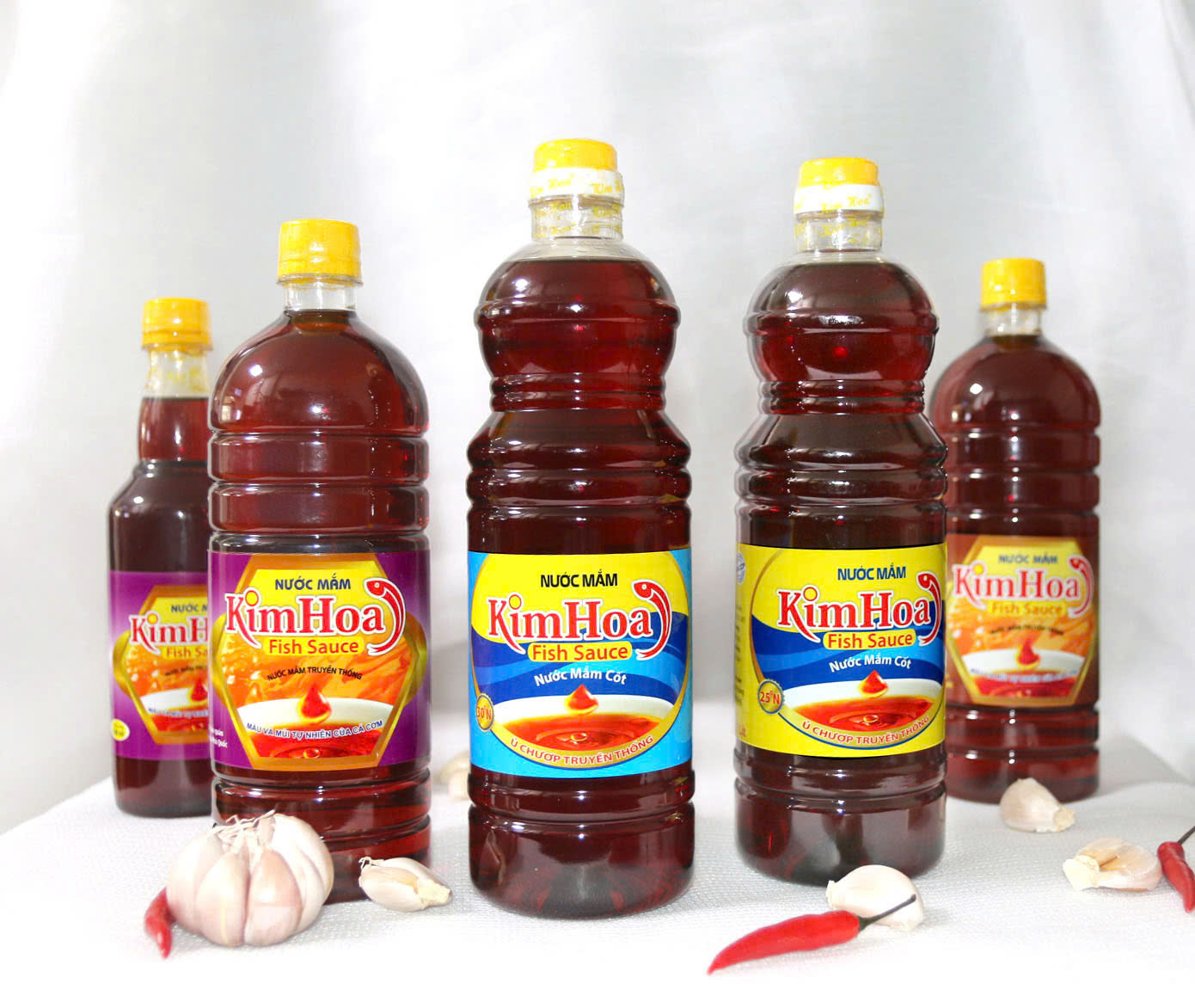 Khác với các loại nước mắm pha chế công nghiệp có sử dụng nhiều chất điều vị và phẩm màu, Nước Mắm Kim Hoa được làm 100% từ Cá Cơm tại vùng đảo Phú Quốc - là loại cá cơm giàu đạm, tươi ngon. Cá cơm sau khi được đánh bắt lên sẽ được ướp ngay trên tàu theo tỷ lệ 3 cá 1 muối, khi thuyền cập bến cá được đưa lên thùng, kiểm tra độ mặn và tiến hành gài nén - ủ chượp trong thùng gỗ đặc trưng. Quá trình này bắt buộc phải từ 12 tháng trở lên, để cá được thuỷ phân hoàn toàn, khi đó nước mắm được kéo rút ra sẽ có màu cánh gián đặc trưng, hương vị đậm đà và cái hậu ngọt của đạm cá được lắng đọng và cảm nhận rõ nơi cuống họng. Chính vì thế, nhiều khách hàng trước có thói quen sử dụng nước mắm công nghiệp khi nếm nước mắm Kim Hoa lần đầu sẽ cảm thấy mặn.