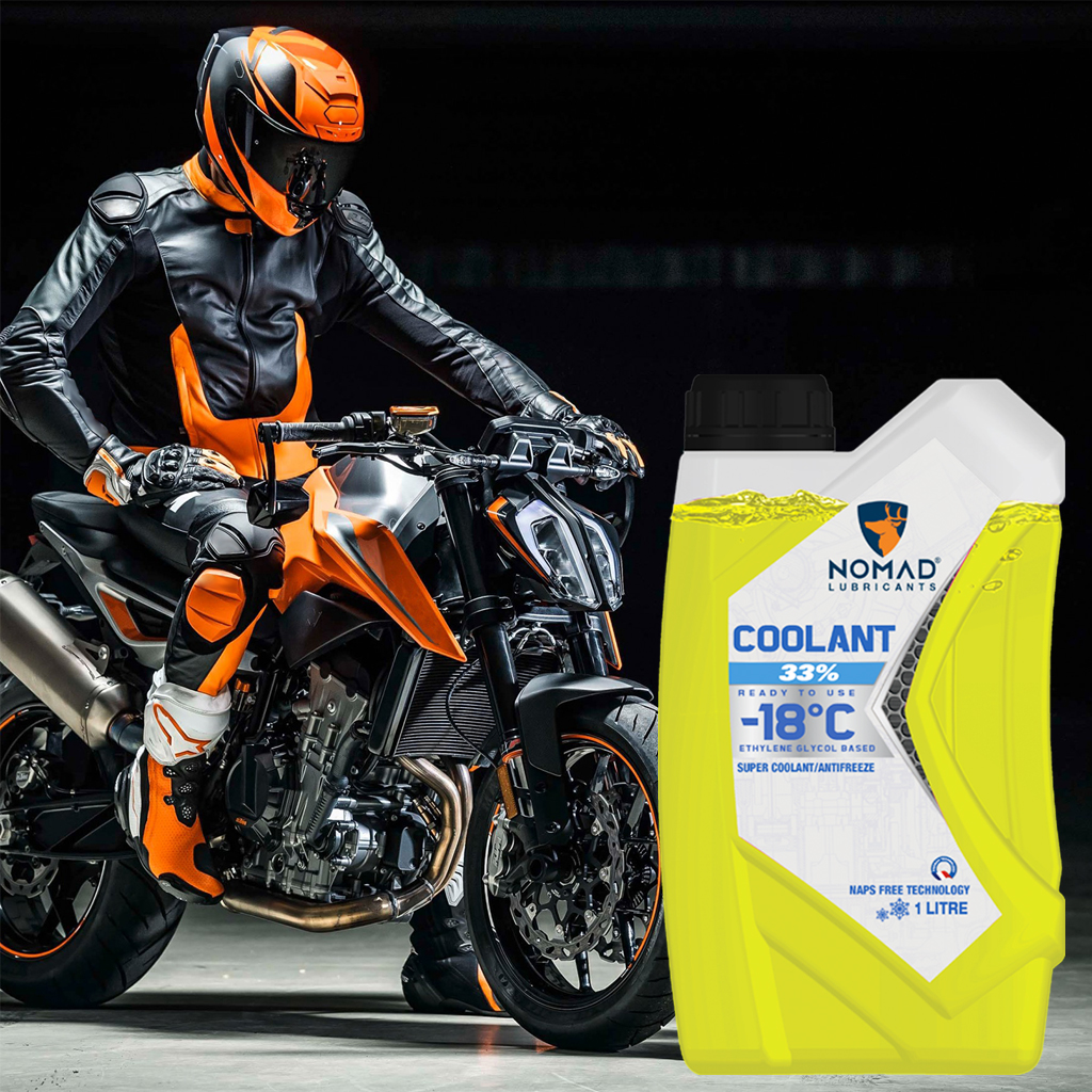 Nước làm mát ô tô, xe máy Nomad Coolant 33% (-18 độ C) được sản xuất từ gốc Ethylene Glycol – là hoạt chất có khả năng tăng cường khả năng tản nhiệt cho động cơ và hạ thấp nhiệt độ đóng băng xuống -18 độ C so với Ethylene Glycol nguyên chất (nhiệt độ đóng băng tại -12 độ C). Do đó, Nomad Coolant 33% đạt công dụng tản nhiệt vượt trội cho động cơ, lượng nhiệt dư thừa khi động cơ vận hành sẽ được dung dịch hấp thu, vận chuyển vào bộ tản nhiệt và giải phóng khỏi động cơ hiệu quả.
