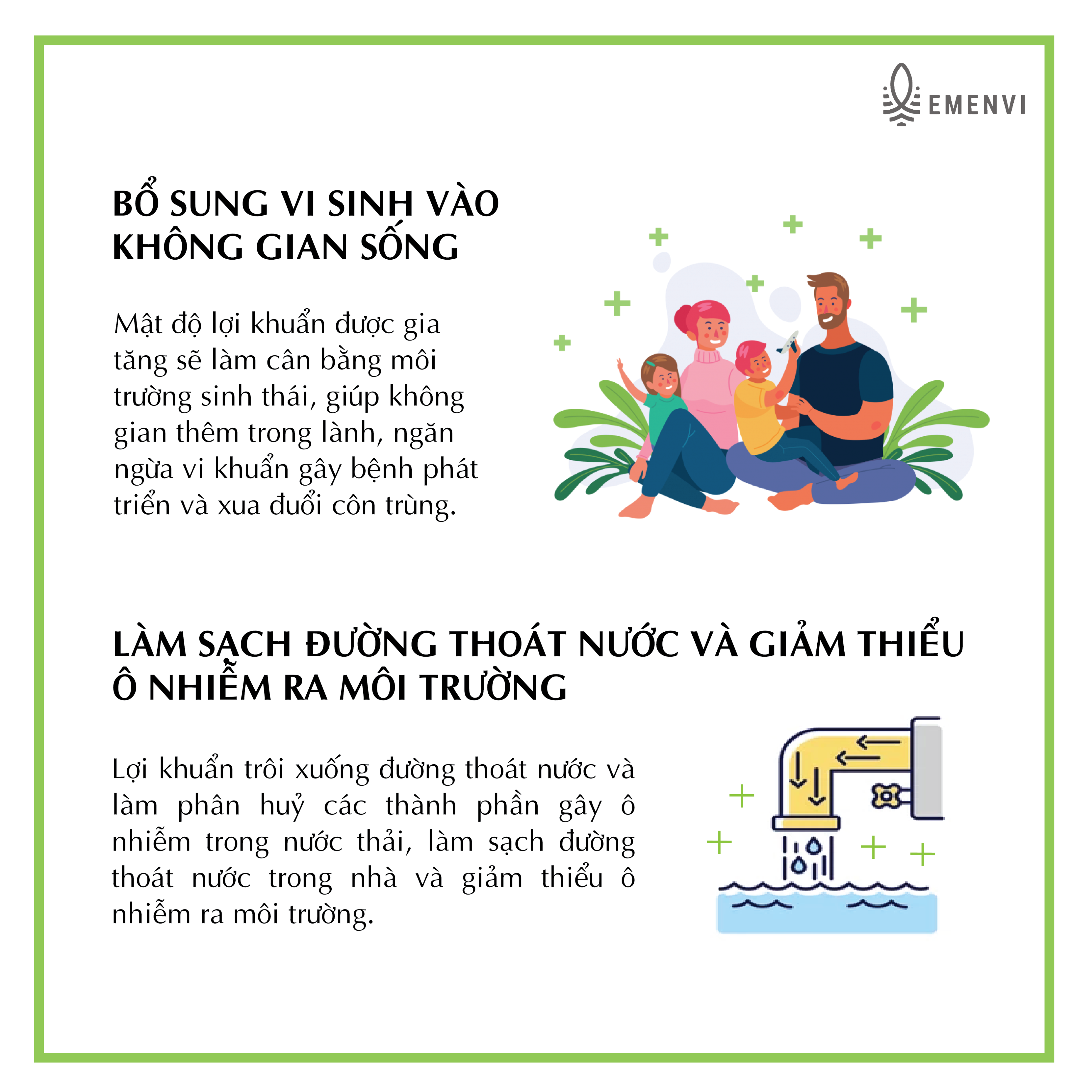 hợp 80 loại lợi khuẩn có trong tự nhiên, tạo thành một hệ thống vi sinh hoạt động mạnh mẽ, cân bằng lại môi trường sinh thái khiến cho hại khuẩn (vi khuẩn gây mùi, gây bệnh, tạo nên những mảng bám bẩn, ẩm mốc,) không thể tiếp tục tồn tại. Cơ chế này đem lại hiệu quả vượt trội trong việc xử lý mùi, khử khuẩn tự nhiên và tạo nên một hệ vi sinh cân bằng,
