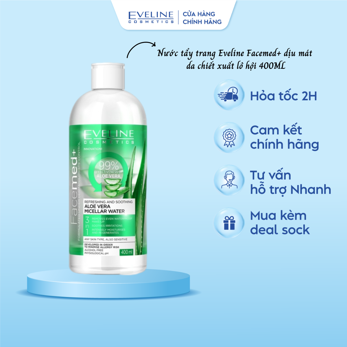 Nước tẩy trang dưỡng ẩm da dành cho da khô và da nhạy cảm 100ML Eveline ( hàng nhập khẩu Balan) Sản phẩm mới mini size phù hợp mang đi du lịch, công tá Công
