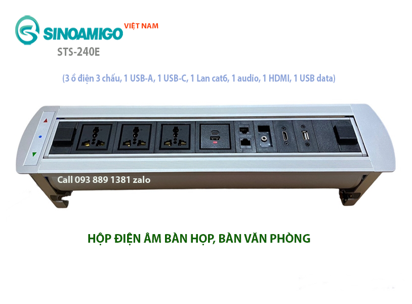 LƯU Ý: Tất cả sản phẩm hộp ổ cắm âm bàn SINOAMIGO do công ty Ánh Hào xuất ra đã bao gồm VAT 10%. Có đầy đủ COCQ chứng nhận chất lượng và nguồn gốc xuất xứ. Bộ sản phẩm ổ cắm âm bàn STS-240E đã bao gồm Modules bên trong.