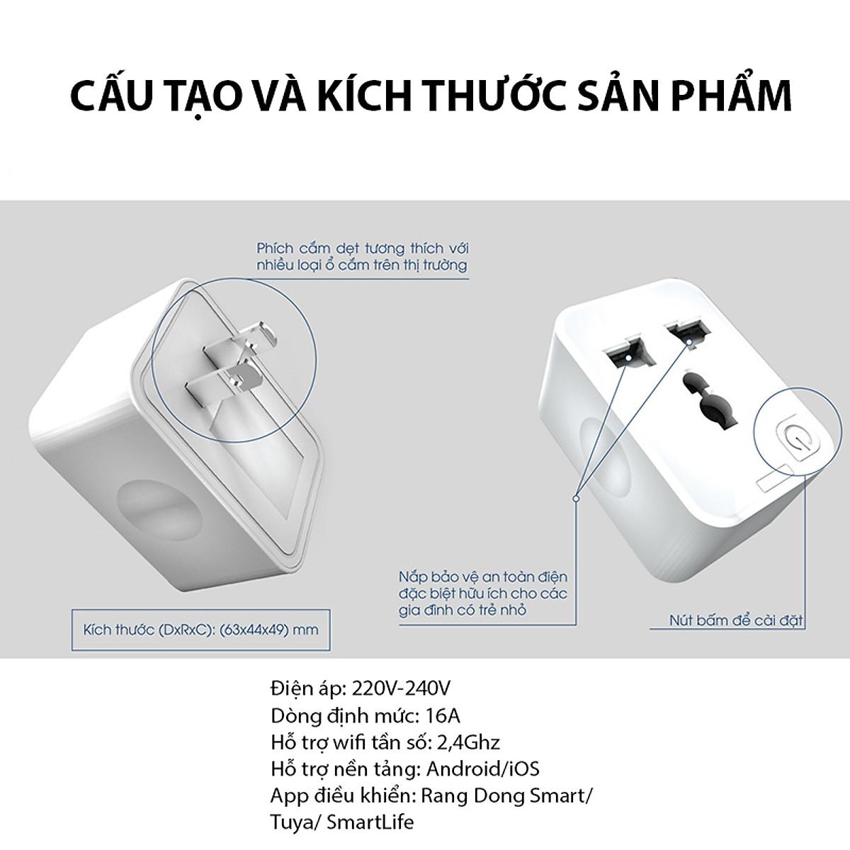 Là dòng sản phẩm ổ cắm thông minh mới nhất đến từ thương hiệu R.ạ Đ.ô, ổ cắm thông minh R.ạ Đ.ô có thể kết nối với mạng wifi gia đình và điều khiển từ xa, hẹn giờ hay kiểm tra trạng thái hoạt động của thiết bị ngay trên điện thoại thông minh thông qua ứng dụng T Sản phẩm ổ cắm wifi đến từ thương hiệu R.ạ Đ.ô có những gì -Sản phẩm có kích thước cực kì nhỏ gọn, bắt mắt, chỉ nhỉnh hơn một chút so với hộp diêm, không chiếm quá nhiều diện tích khi cắm vào ổ điện -Điều khiển từ xa, hẹn giờ bật/tắt hay quản lý trạng thái hoạt động thiết bị hoàn toàn trên ứng dụng điện thoại, phản hồi nhanh chóng gần như không có độ trễ. -Thiết kế chú trọng đến sự an toàn cho người dùng với chất liệu nhựa PC cao cấp chịu va đập, cách điện, không bắt lửa và lỗ cắm tích hợp nắp bảo vệ tránh trẻ nhỏ sơ ý dùng vật nhọn chọc vào.