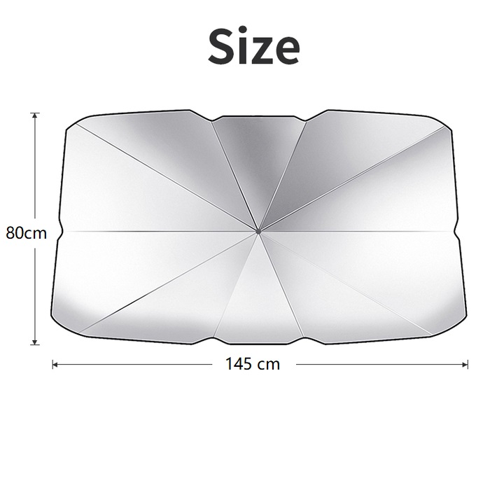 Ô che nắng, chắn tia UV kính lái ô tô đa năng - Chất liệu: (vải dù) keo bạc titan - Kích thước: 80x145cm Ô che nắng, chắn tia UV kính lái ô tô đa năng - Bảo vệ khỏi ánh nắng mặt trời: Chiếc ô che nắng chất lượng cao không chỉ bảo vệ chặn ánh sáng mặt trời một cách hoàn hảo mà còn giúp bảng điều khiển và vải bọc không bị phai màu và rách, đồng thời rút ngắn đáng kể thời gian cần thiết để làm mát xe của bạn.