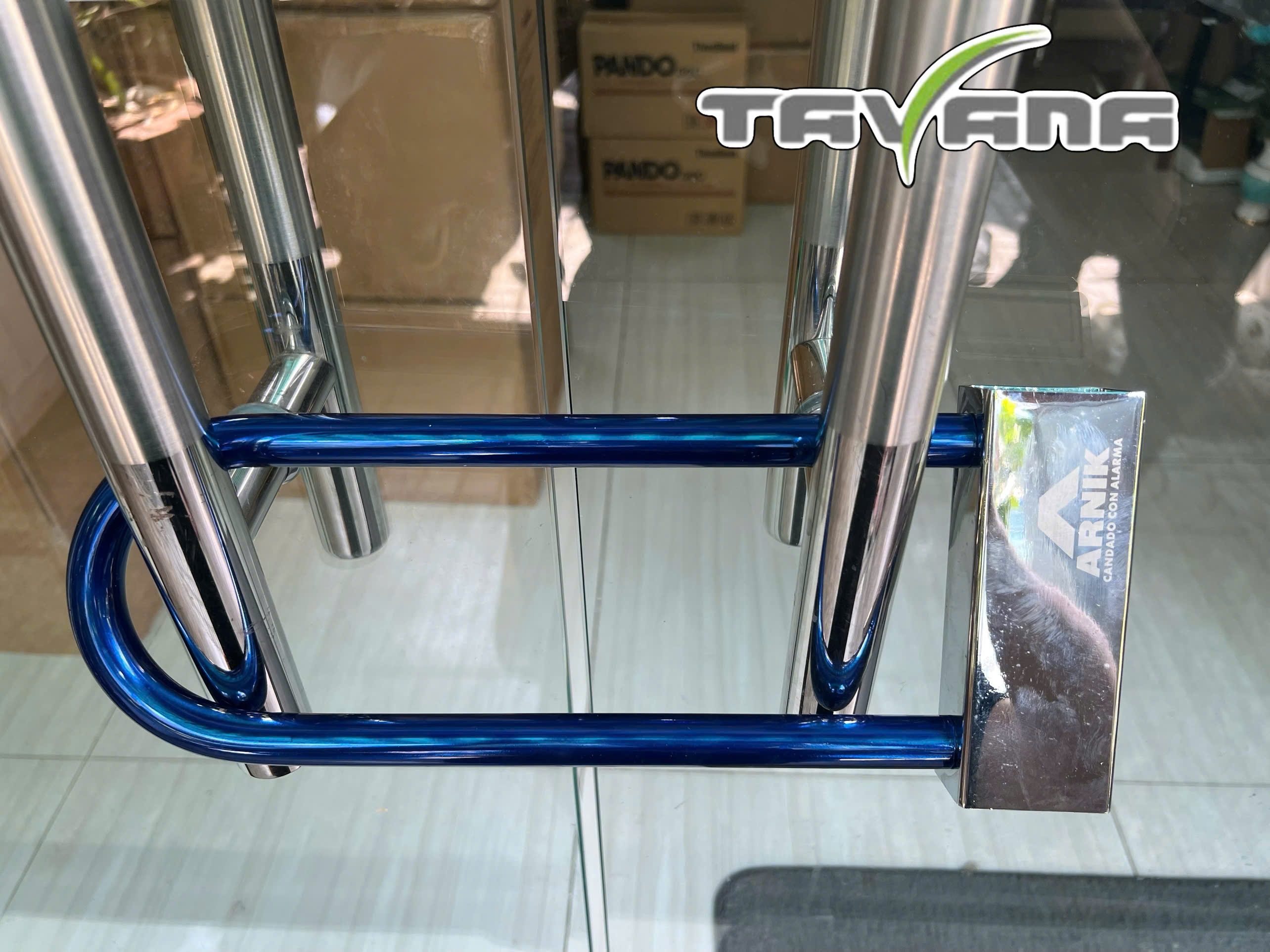 Ứng dụng: Sử dụng cho các dòng xe máy, xe đạp, nhà cửa, tủ,.... Khóa báo động, chống trộm, chống cắt, an toàn cao, chắc chắn, sử dụng lâu bền, bảo vệ tài sản của bạn. Thành phần: Thân khóa làm bằng nhôm, còng chữ U làm bằng thép được bọc nhựa dẻo bên ngoài. . Còng khóa cứng, không gỉ sét, chống cắt, chống ăn mòn. . Kích thước: 41x16x3cm . Còng khóa dài : 30cm . Chuông báo động: 110 deciben . Cân nặng : 1700gam Cách thay pin : Mở ổ khóa, tháo càng ra sau đó tháo 2 vít bên trong và tháo nắp ra, thay thế pin mới vào. * Sau 6 tháng, nếu khóa không còn reo báo động thì hãy thay pin mới
