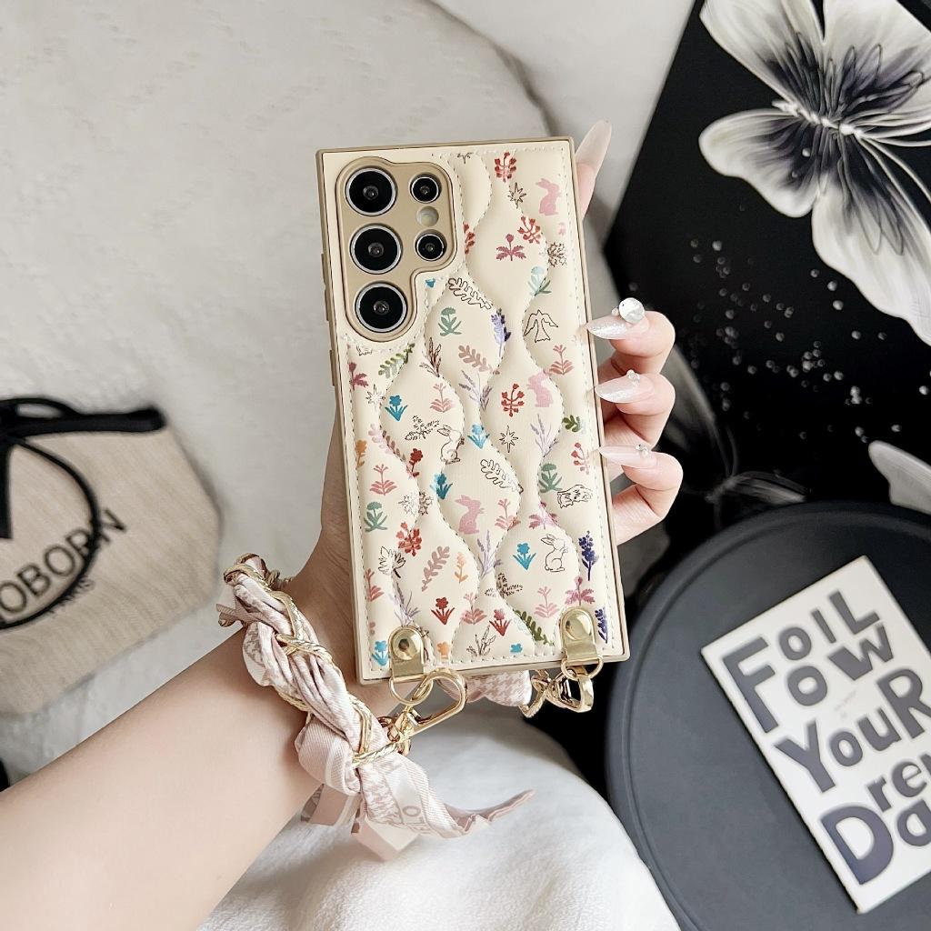 ✨Ốp Lưng TPU Chỉ Nổi Họa Tiết Hoa Kèm Quai Khăn Lụa Sang trọng Cho Samsung S25 Ultra / S24 Ultra / S23 Ultra