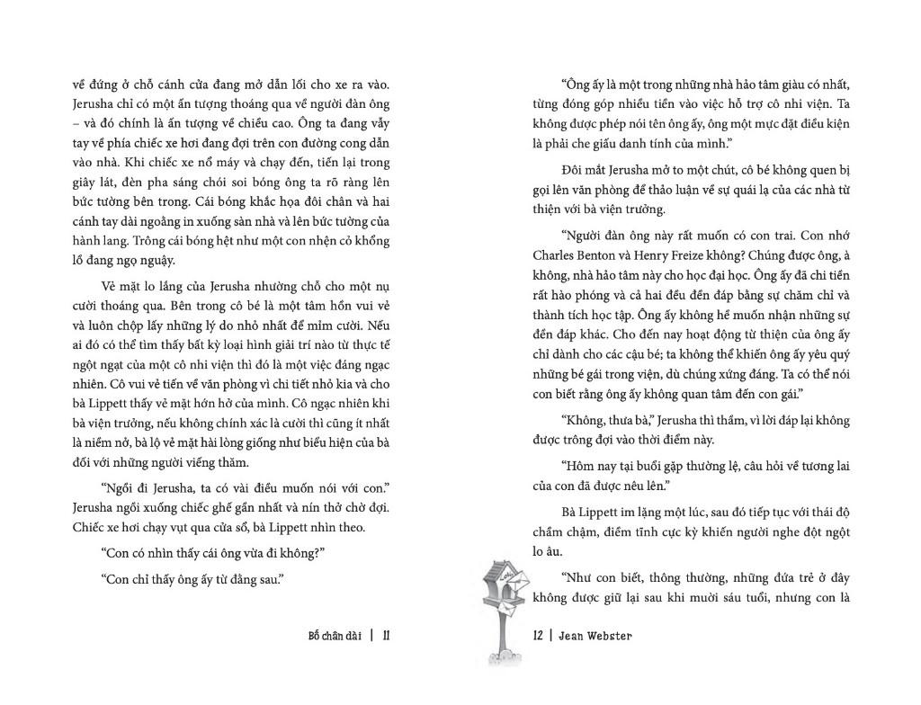 Ông Bố Chân Dài ban đầu được xuất bản nhiều kỳ trên Tạp chí Ladies' Home. Truyện kể về cô gái lớn lên trong trại trẻ mồ côi tên là Jerusha Abbott được người cha nuôi mà cô chưa biết mặt - một nhà hảo tâm ẩn danh tài trợ. Tác phẩm với hình thức độc đáo là những bức thư do nhân vật chính viết cho ân nhân của mình đã nhận được sự đánh giá cao của giới chuyên môn, được in thành sách xuất bản vào tháng 10 năm 1912, sau đó được chuyển thể thành kịch và lưu diễn khắp nước Mỹ.