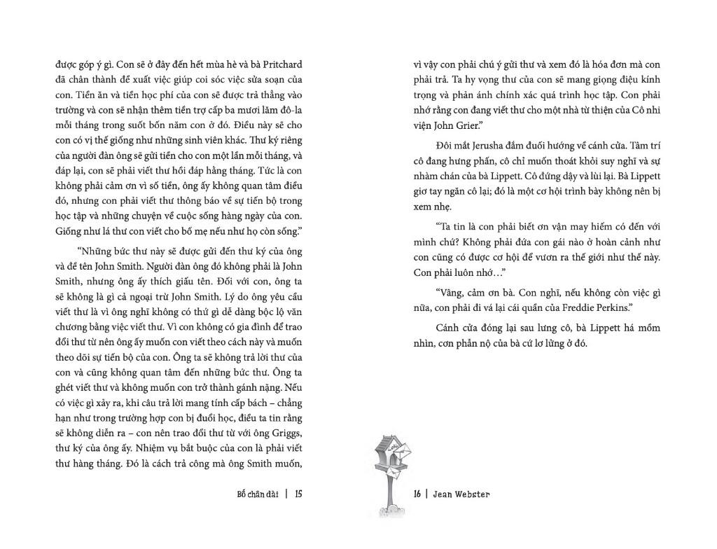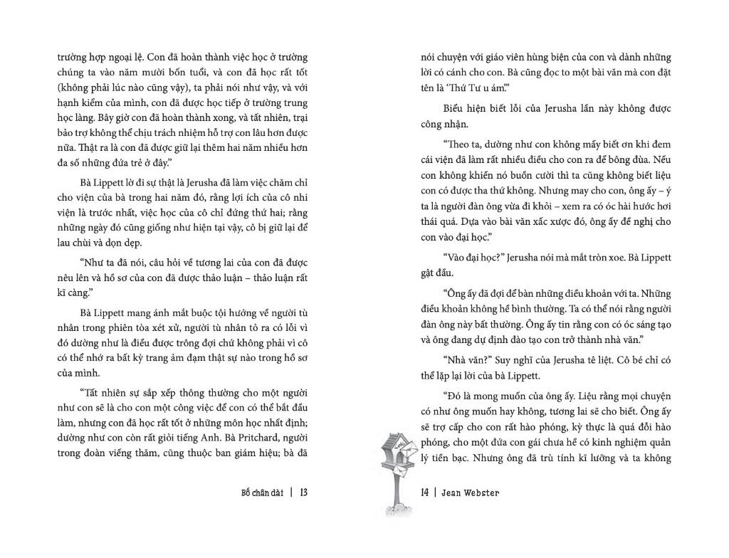 Jean Webster là bút danh của Alice Jane Chandler Webster - nữ nhà văn người Mỹ nổi tiếng với các tiểu thuyết như: Ông bố chân dài (Daddy-Long-Legs), Kẻ thù thân yêu (Dear Enemy)