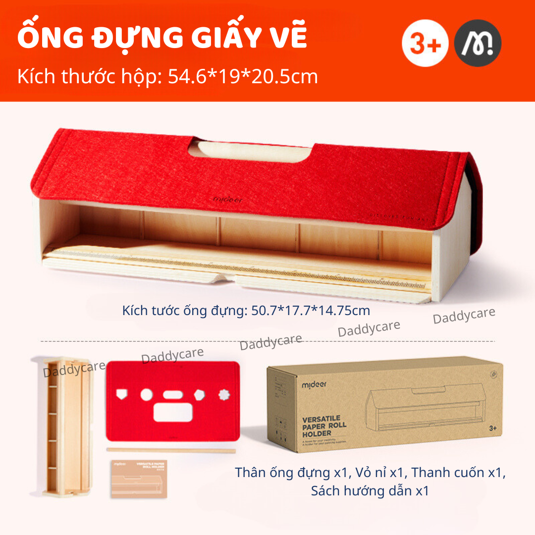 - Ống đựng giấy vẽ Mideer bao gồm: 1 vỏ nỉ, 1 thanh cuộn, 1 giá đỡ cuộn giấy, 1 tờ hướng dẫn Lưu ý Ống đựng giấy vẽ mỹ thuật Mideer Versatile Paper Roll Holder
