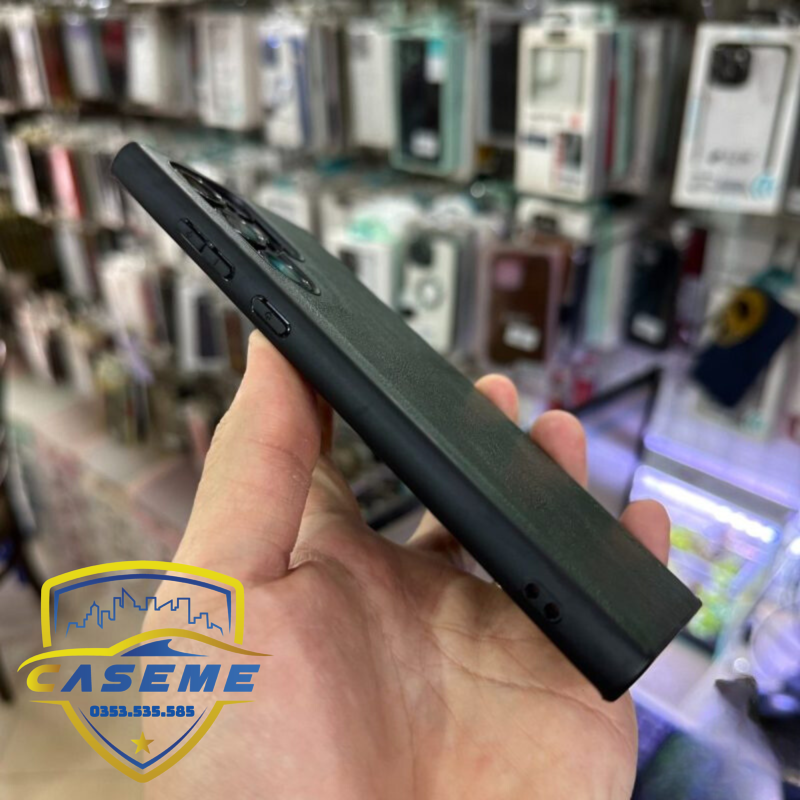 Phần lưng thiết kế vân da, rất giống da thật, cầm bám tay, không bám mồ hôi, vân tay, không mờ, không ố vàng trong quá trình sử dụng.