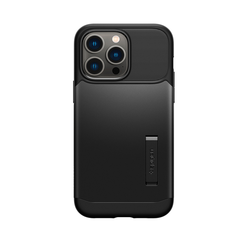 - Khung nhựa Polycarbonate cố định ngoài: Phần này không những cố định khung TPU, gia tăng khả năng bảo vệ mà còn tạo nên nét riêng cho điện thoại. Dễ sử dụng các nút bấm, cổng kết nối Vì thiết kế cho iPhone 14 Pro Max nên các vị trí của ốp lưng chính xác và vừa vặn, không gây cản trở hay khó khăn cho người sử dụng. Các nút bấm cho cảm giác bấm tốt, cổng sạc và mic được cắt cạnh thẩm mỹ. Viền màn hình nhô cao để bảo vệ Camera sau và màn hình cong 2 cạnh của iPhone 14 Pro Max thiết kế nâng màn hình và lens camera có viền bezels lên khỏi bề mặt phẳng giúp bảo vệ màn hình và cụm lens camera phía sau tránh bễ vỡ, trầy xước, hao mòn,… Công nghệ chống sốc nâng cao Điểm khác biệt của dòng ốp lưng Spigen Slim Armor là công nghệ hấp thụ lực tác động với công nghệ Air Cushion (đệm khí) ở 4 góc giúp điện thoại của bạn có khả năng sống sót cao hơn khi gặp các rủi ro hay va đập trong điều kiện khắc nghiệt. Chân dựng máy tiện dụng Một tính năng nổi trội của Slim Armor là chân chống dựng máy nghiêng kickstand. Bạn có thể điều chỉnh gạc chân chống giúp điện thoại đứng theo ý muốn và tha hồ xem video hay lướt web mà không sợ cầm mỏi tay. Thiết kế gọn nhẹ Dù có tới hai lớp cấu tạo và chân chống thông minh, nhưng ốp Slim Armor vẫn giữ được độ mỏng của thiết bị và dễ dàng nhét vào túi quần jean. Với các ưu điểm nổi trội như trên, ốp lưng Slim Armor của Spigen xứng đáng là lựa chọn hàng đầu của các tín đồ iPhone 14 Pro Max. Hình ảnh sản phẩm Thông số kỹ thuật