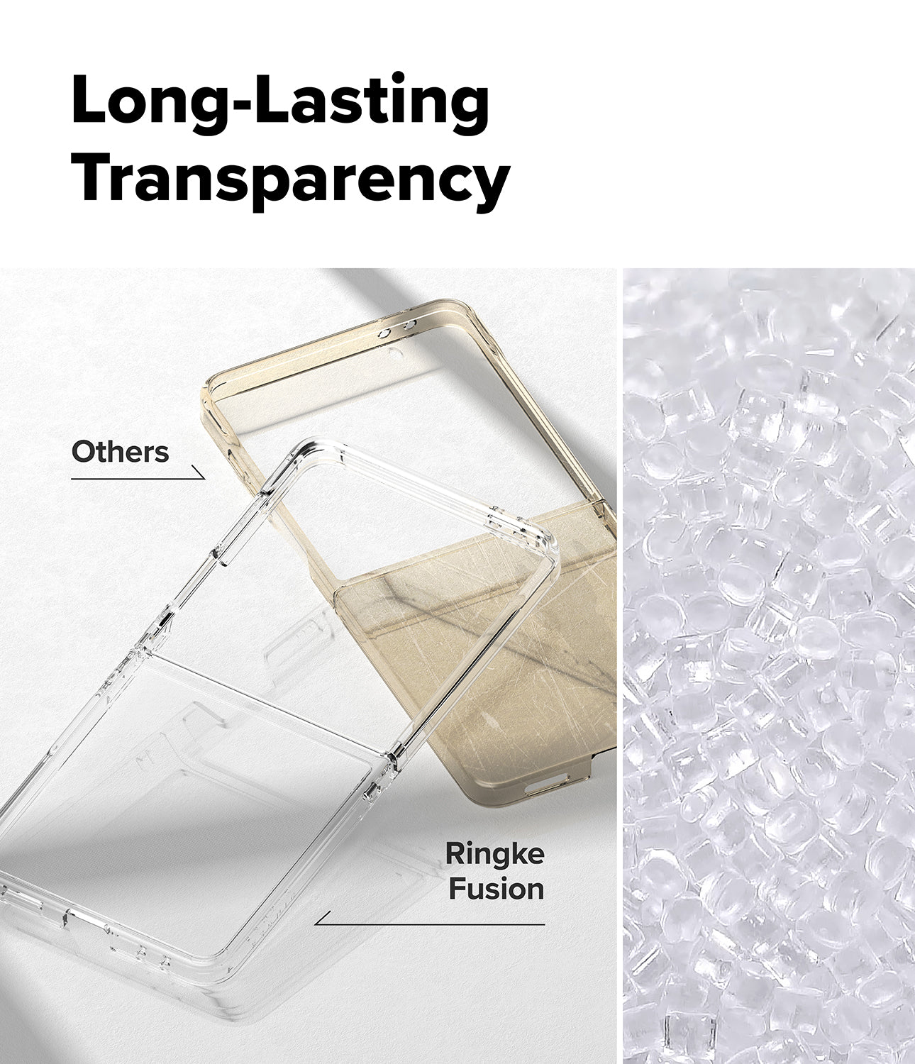 Ốp lưng Samsung Galaxy Z Flip 6 RINGKE Fusion có thiết kế trong suốt và kết nối phần trên và phần dưới ốp lưng, giúp giữ nguyên vị trí trong khi mở và đóng thiết bị.