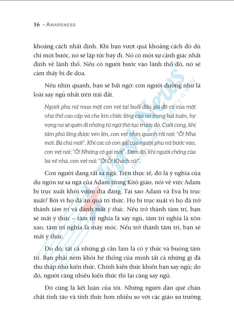 “Nếu các bậc trí giả trên thế giới này có đồng thuận về điều gì thì đó chính là con người vốn dĩ đều say ngủ, và con người nên tỉnh thức. Tỉnh thức là mục tiêu và là hương vị chung trong mọi lời dạy của họ”.