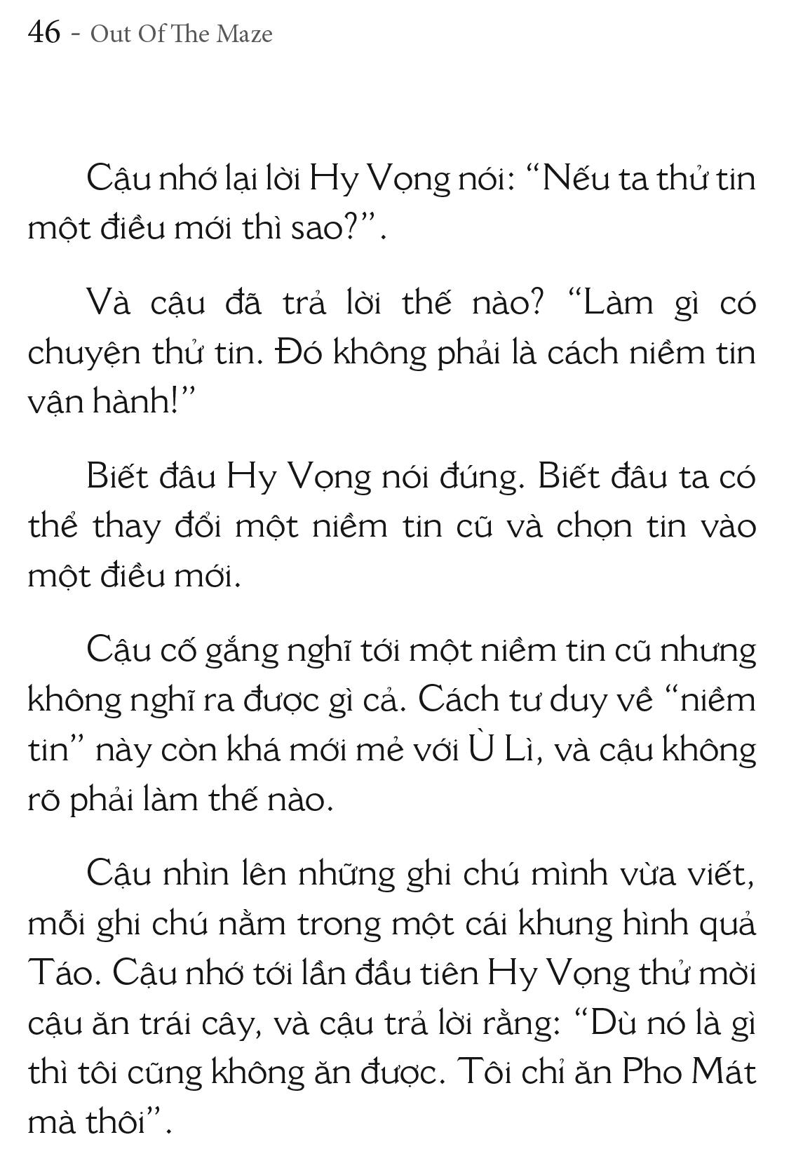 Được viết cho mọi lứa tuổi, “Đào thoát khỏi Mê Cung” tốn của độc giả chưa đến 1 giờ để đọc, nhưng những giá trị mà nó mang lại sẽ theo họ đến hết cả cuộc đời.