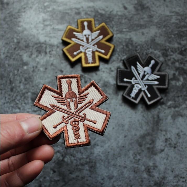 Patch phù hiệu y tế dán quần áo_ba lô túi xách Được thêu cực kỳ sắc sảo Bao gồm 2 phần : lớp vải thêu có gai + lớp rối dùng để may vào vải Nếu ba lô , nón , quần áo có sẵn lớp rối thì chỉ việc gắn vào là được , rất nhanh và tiện dụng