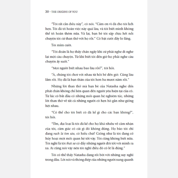 Qua từng chương sách, Vienna Pharaon sẽ dẫn dắt chúng ta khám phá từng loại trong số các vết thương do câu chuyện cội nguồn gây ra. Đồng thời, cô cũng hướng dẫn bạn chữa lành vết thương của mình với phương pháp Chữa lành tận gốc gồm bốn bước: xác định vết thương, bằng chứng về nó, nỗi tiếc thương đi kèm với nó, và cuối cùng là thực hiện những thay đổi lâu dài để không lặp lại những khuôn mẫu mà bạn vẫn cố phá vỡ trong các mối quan hệ ở tuổi trưởng thành.